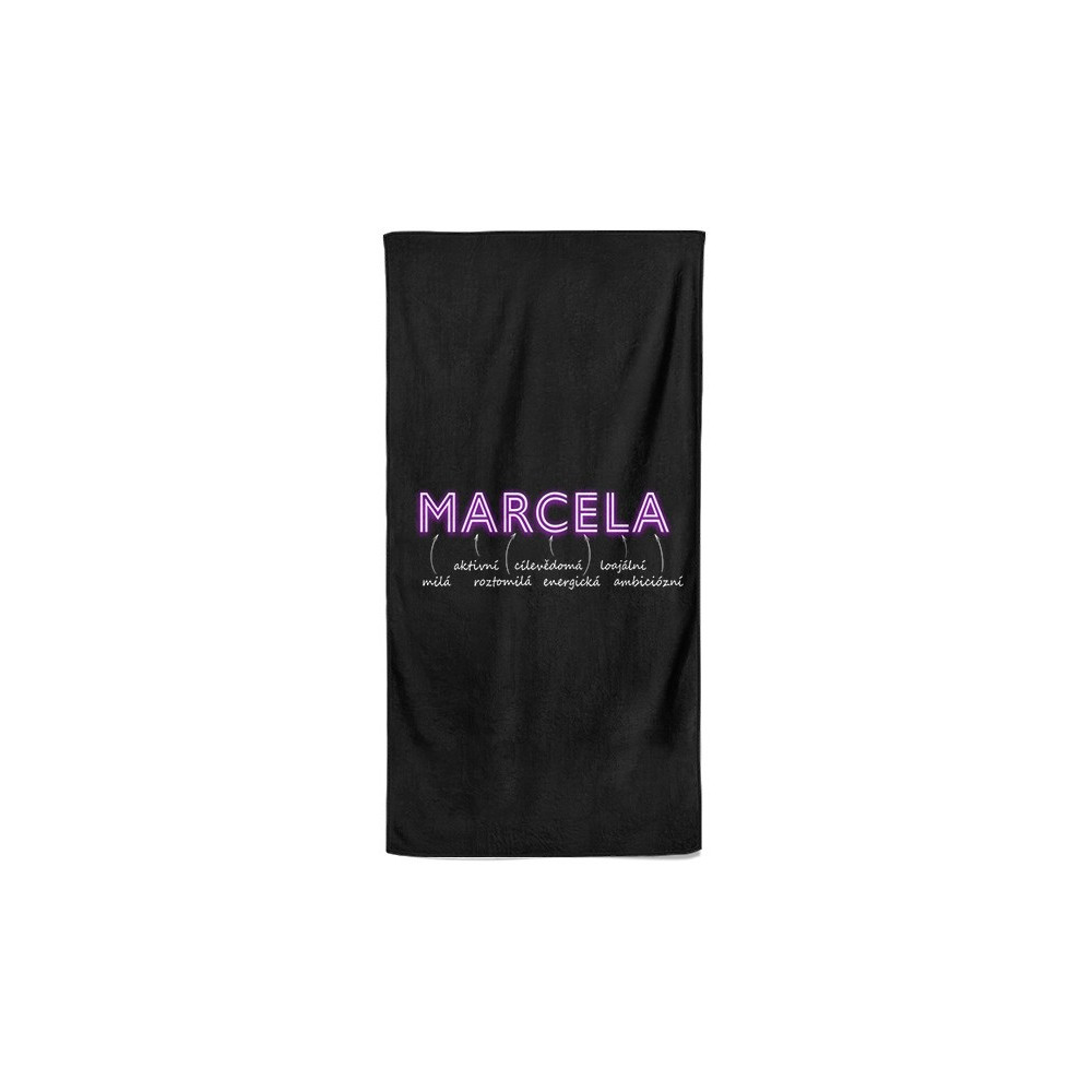 Luxusní osuška v černé barvě s vlastním jménem. Osuška má velký rozměr a materiál je velmi příjemný na dotek a díky speciální technice výroby, kdy se smísí BA a PES vlákna.