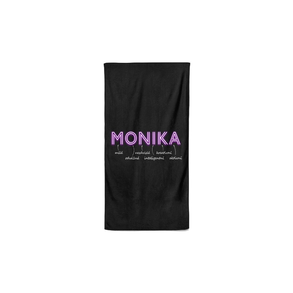 Luxusní osuška v černé barvě s vlastním jménem. Osuška má velký rozměr a materiál je velmi příjemný na dotek a díky speciální technice výroby, kdy se smísí BA a PES vlákna.