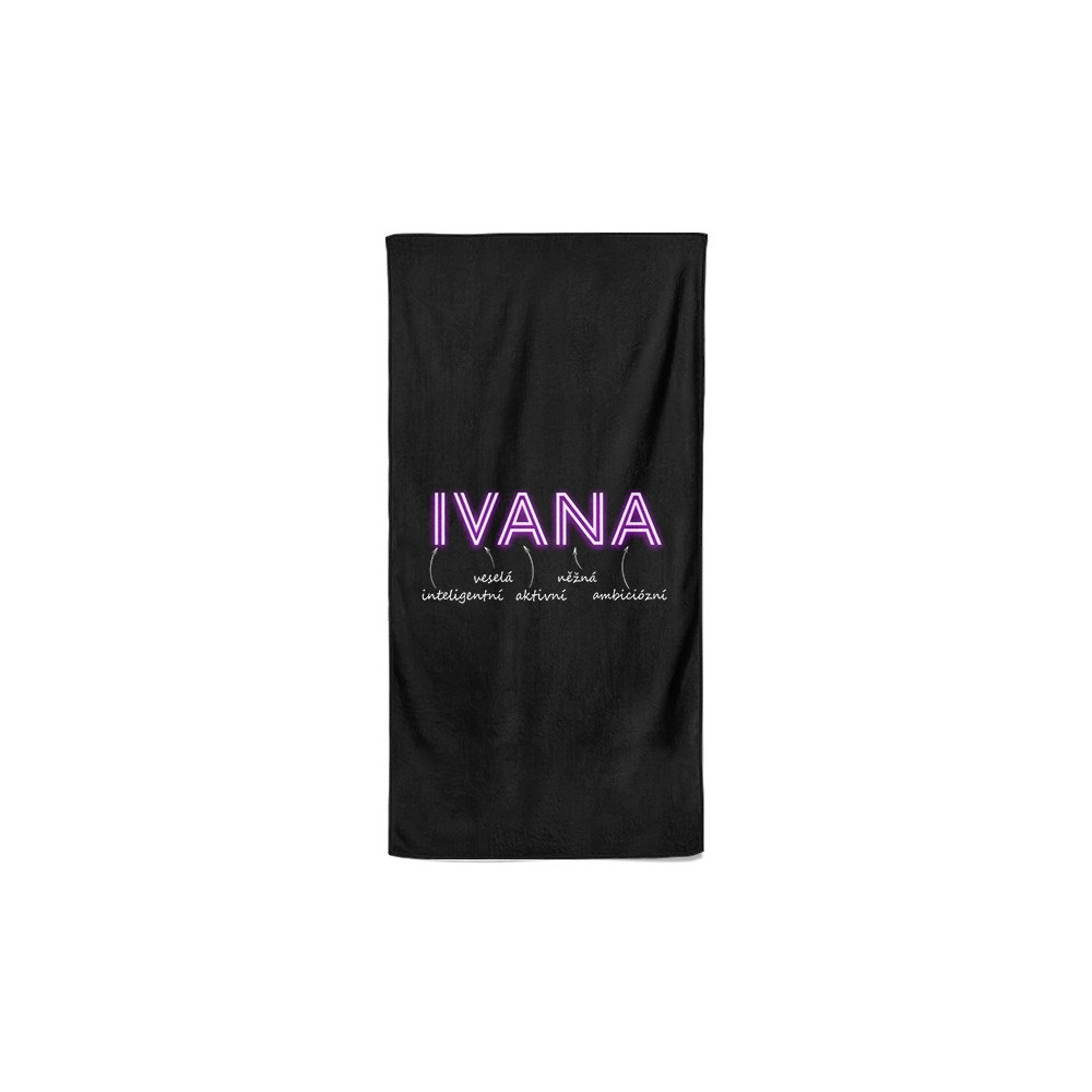 Luxusní osuška v černé barvě s vlastním jménem. Osuška má velký rozměr a materiál je velmi příjemný na dotek a díky speciální technice výroby, kdy se smísí BA a PES vlákna.