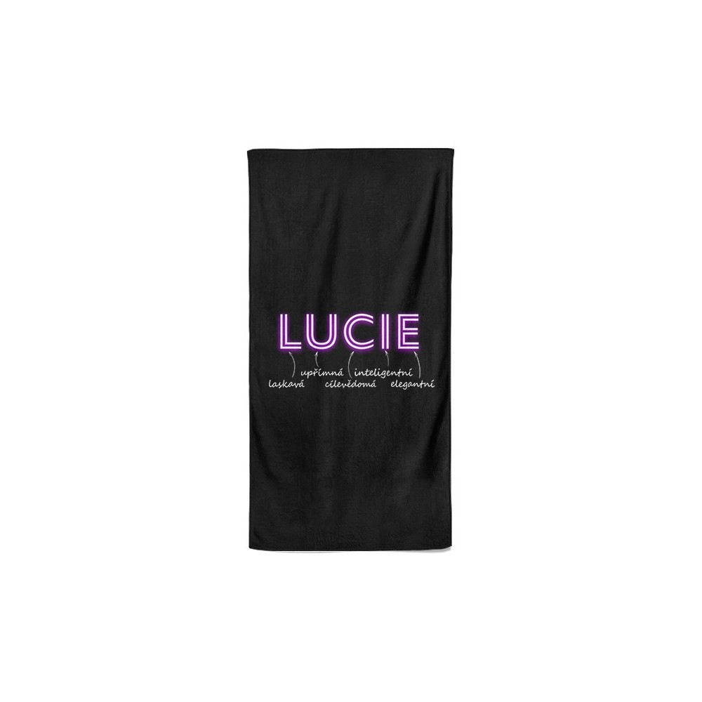 Luxusní osuška v černé barvě s vlastním jménem. Osuška má velký rozměr a materiál je velmi příjemný na dotek a díky speciální technice výroby, kdy se smísí BA a PES vlákna.