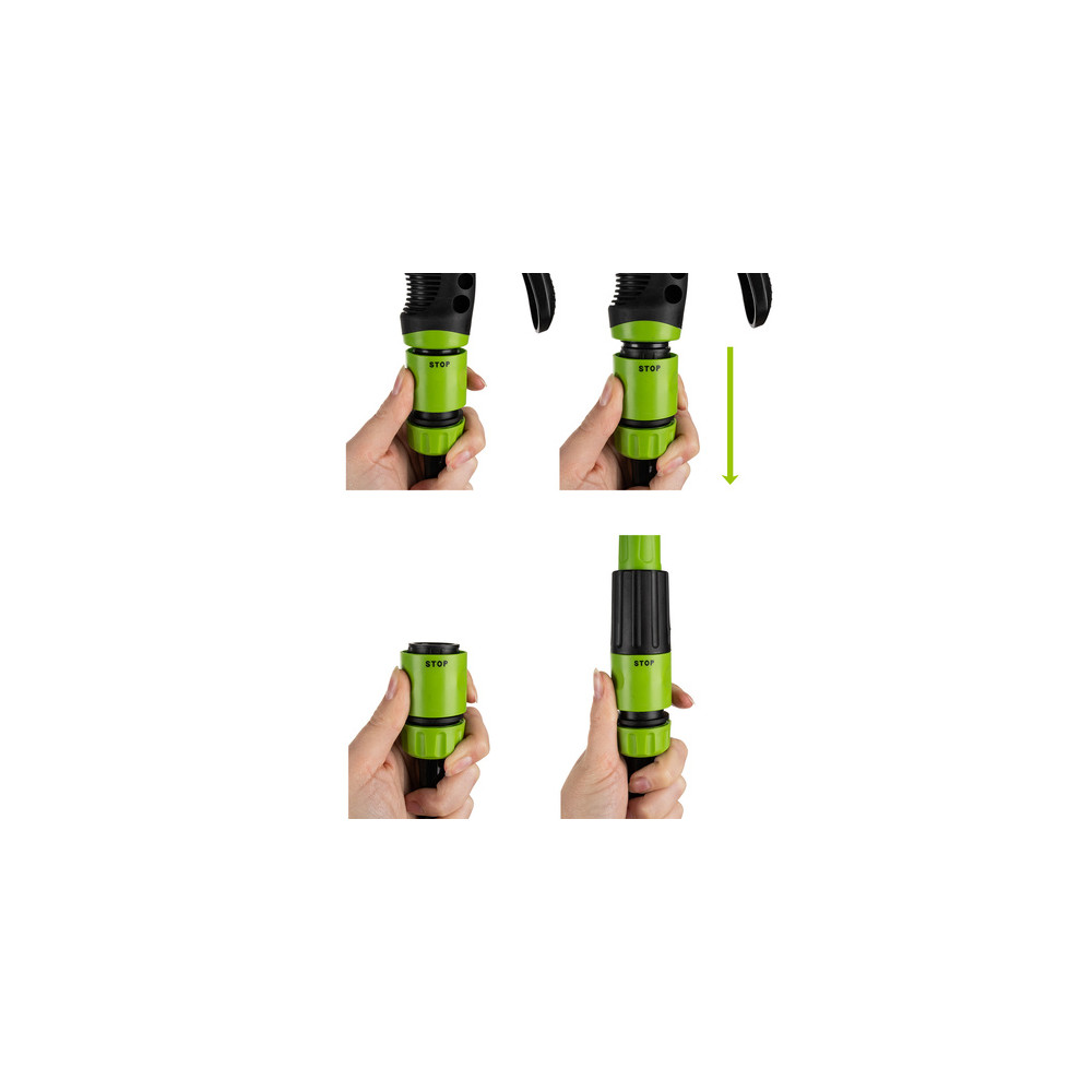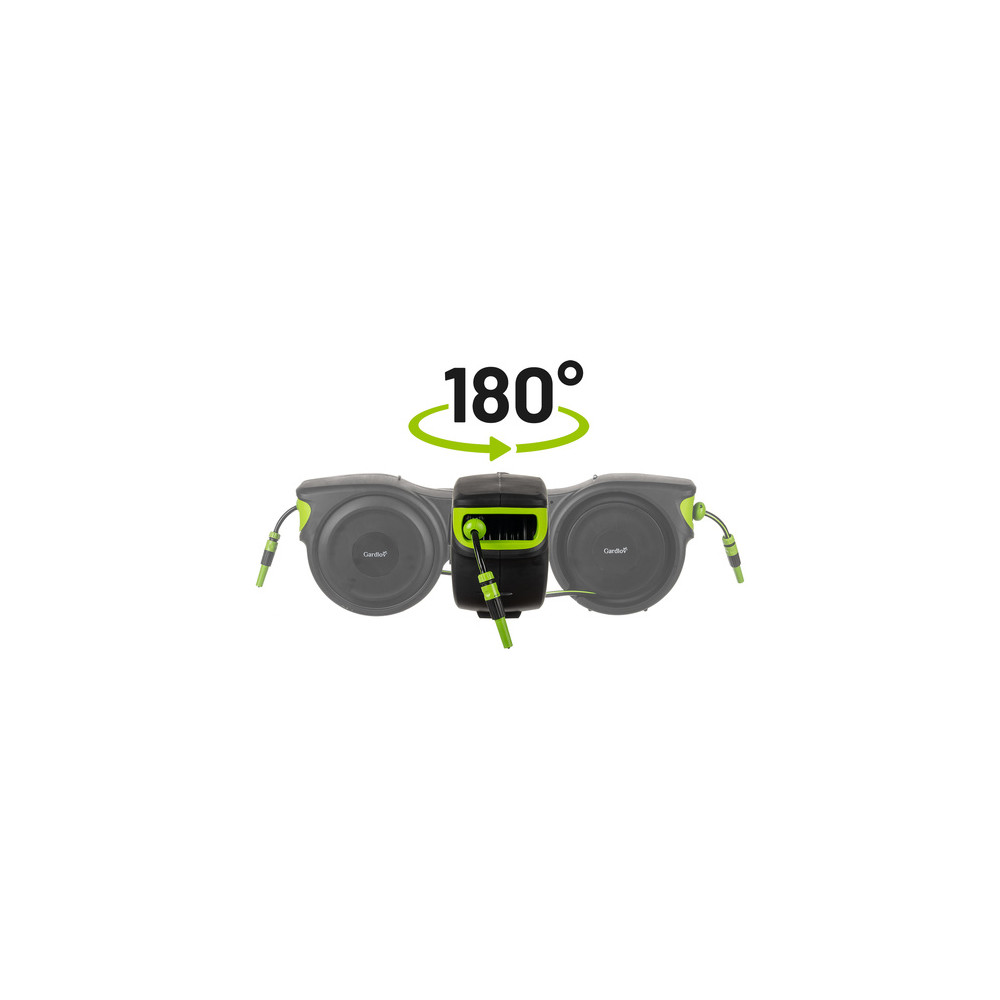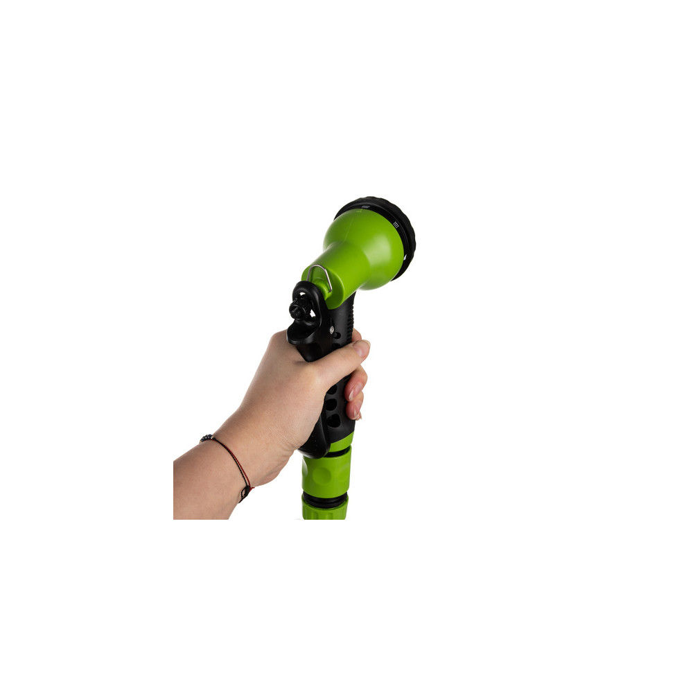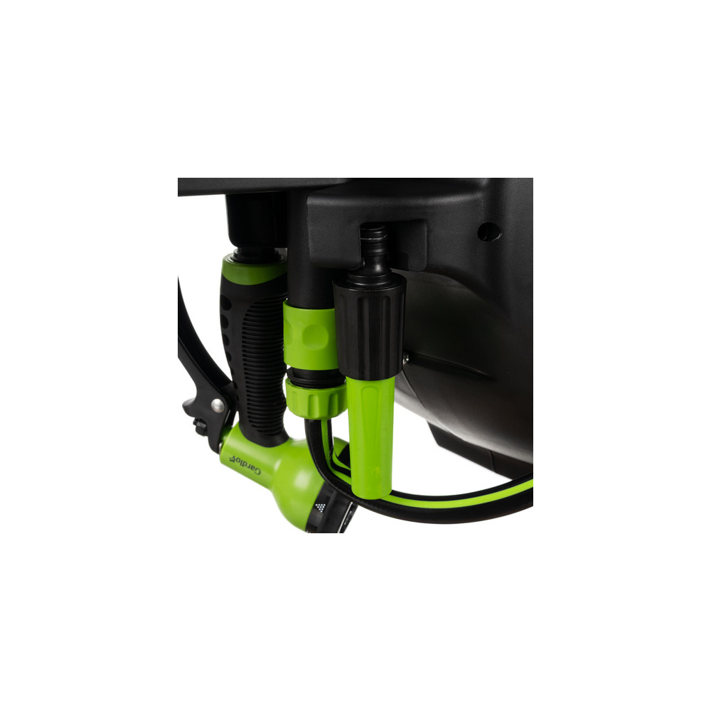 Odolný materiál zajišťuje dlouhou životnost i při každodenním používání a vystavení povětrnostním vlivům. Otočná rukojeť a regulace proudu vody umožňují přizpůsobit zavlažování každé situaci. Bezpečné a stabilní provedení s praktickým uložením příslušenství minimalizuje riziko poškození a udržuje pořádek na zahradě.