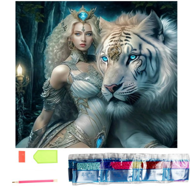 Norimpex Diamantový obrázek malování 30x40cm - Princezna s bílým tygrem