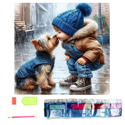 Norimpex Diamantový obrázek malování 30x40cm - Chlapeček s pejskem