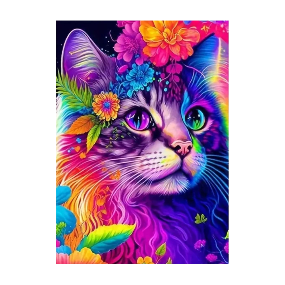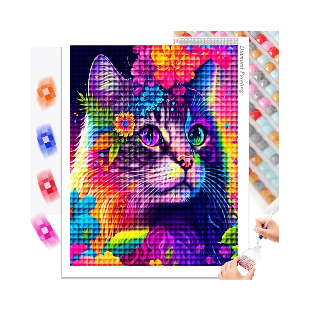 Norimpex Diamantový obrázek malování 30x40cm - Barevná kočka s květinami