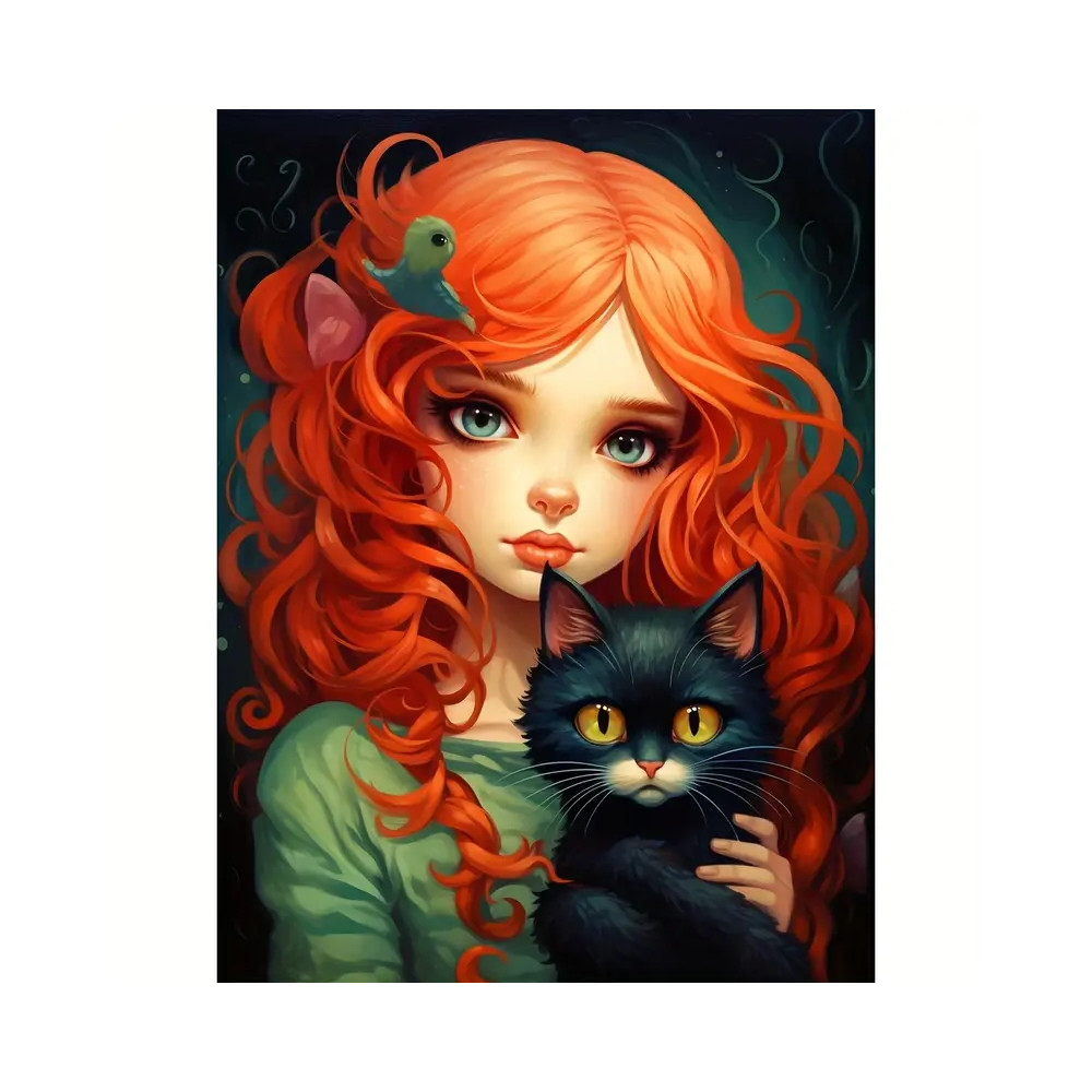 Norimpex Diamantový obrázek malování 30x40cm - Rusovláska s černou kočkou