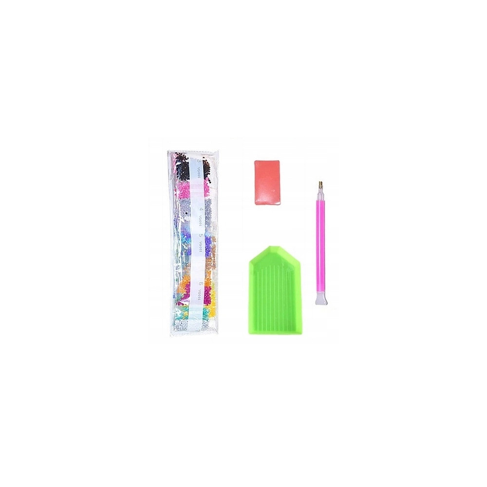 Postup: Obrázek je zakrytý ochrannou folii, kterou sundávejte vždy postupně, tak jak budete aplikovat kamínky. Při sundání celé folie najednou hrozí, že se ztratí viskozita lepidla a kamínky nebudou držet. Plátno obsahuje označení, která jsou umístěna i na sáčcích s kamínky. Podle označení, víte kam který kamínek patří. Nejprve si do hrotu tužky naberete vosk, díky kterému se kamínky snadno přichytí na pero. Kamínky perem aplikujete na obrázek.