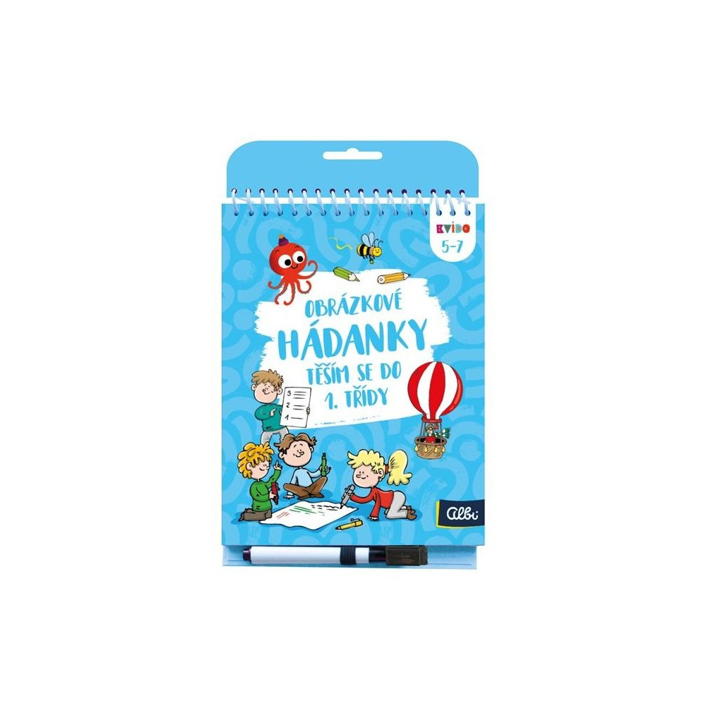Obrázkové hádanky na cesty od Kvída jsou originální ilustrované hádanky od českých autorů, které rozvíjí znalosti dětí v různých oblastech. Těším se do 1. třídy rozvíjí grafomotoriku, základní početní úkoly a vnímání času a prostoru.