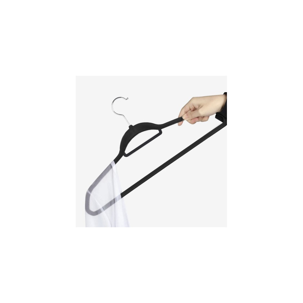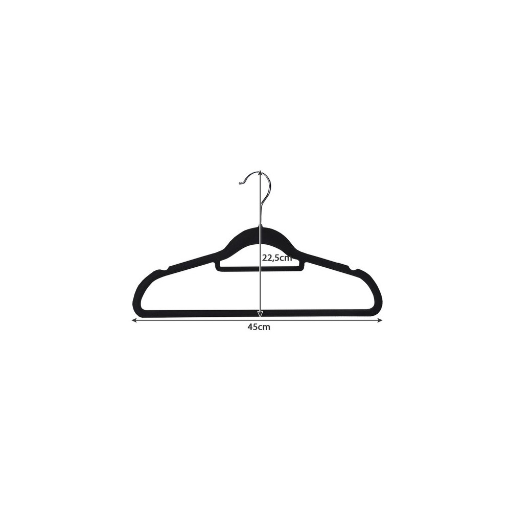 Sada 20 sametových ramínek je praktickým řešením pro přehledné a úsporné uspořádání šatníku. Díky kompaktnímu designu šetří místo a umožní vám uložit více oblečení na menší prostor. Ramínka jsou vybavena pevným otočným kovovým háčkem s rotací o 360°, který zajistí snadné zavěšení a flexibilní použití.