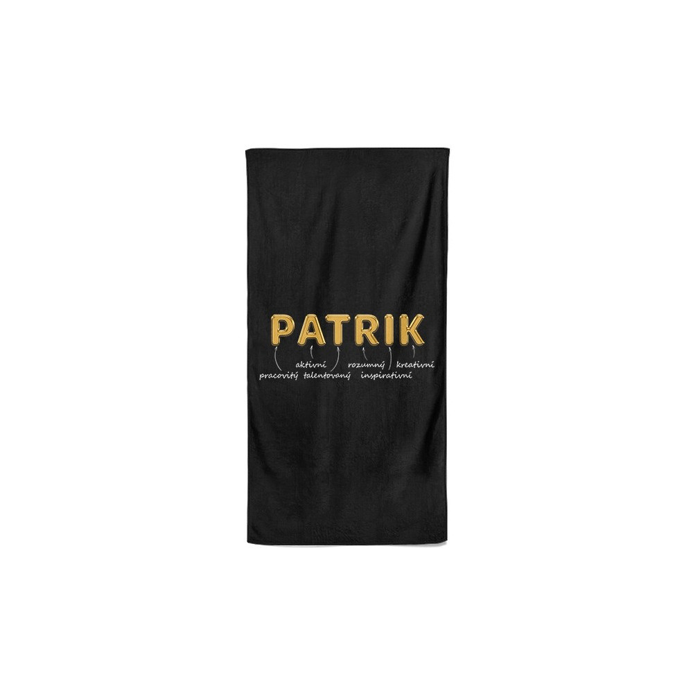 Luxusní osuška v černé barvě s vlastním jménem. Osuška má velký rozměr a materiál je velmi příjemný na dotek a díky speciální technice výroby, kdy se smísí BA a PES vlákna.