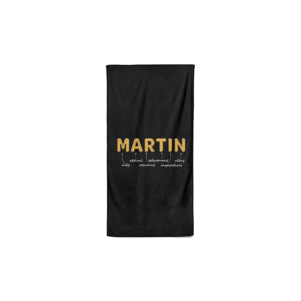 Luxusní osuška v černé barvě s vlastním jménem. Osuška má velký rozměr a materiál je velmi příjemný na dotek a díky speciální technice výroby, kdy se smísí BA a PES vlákna.