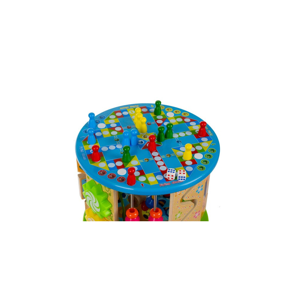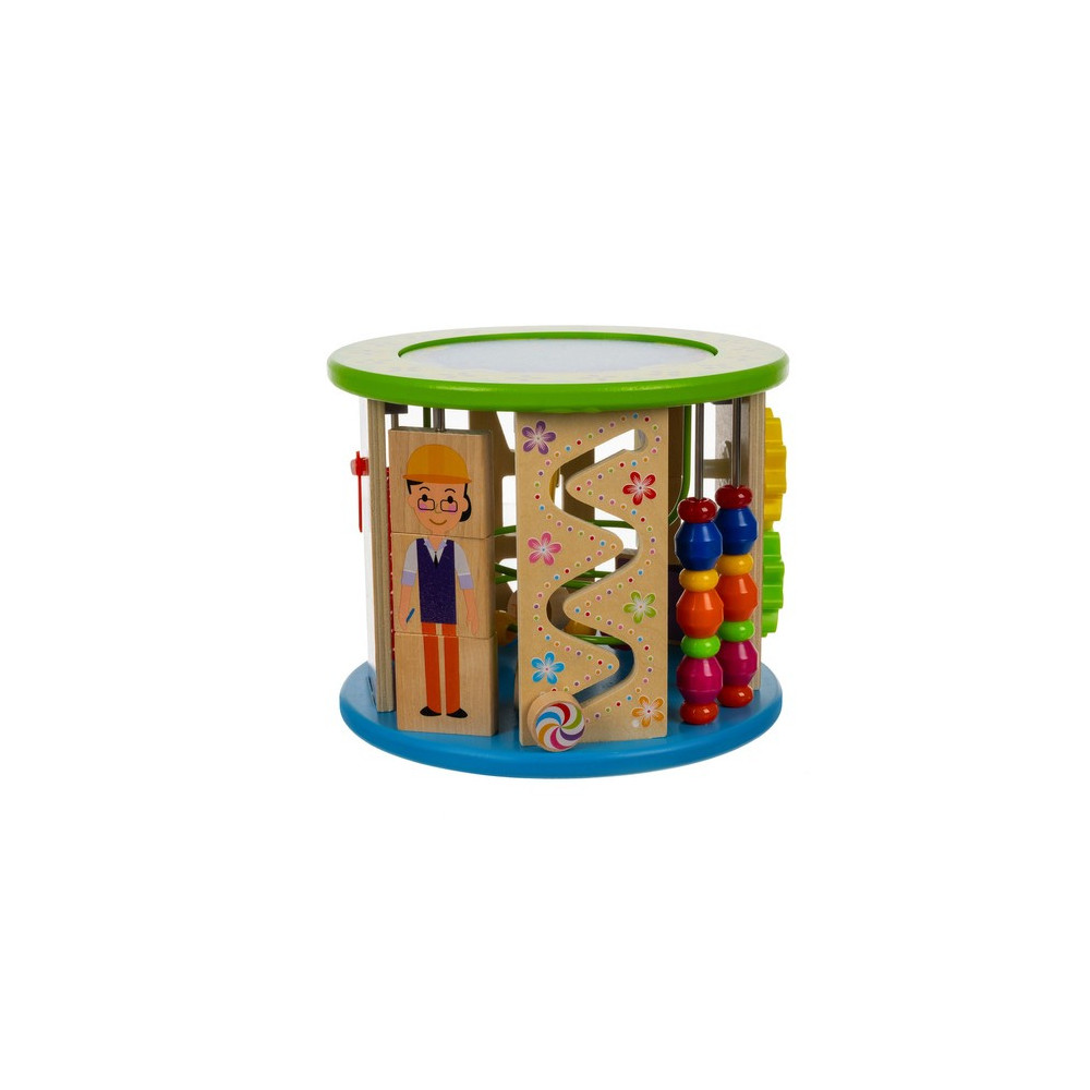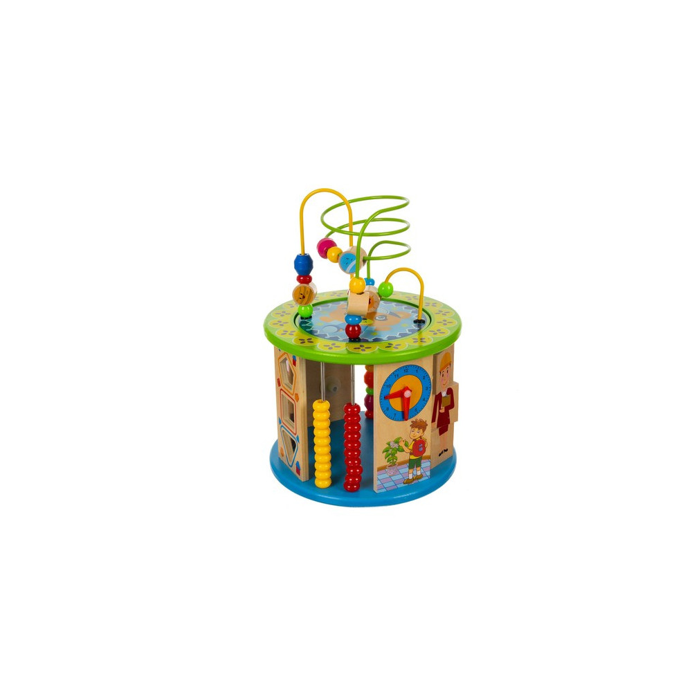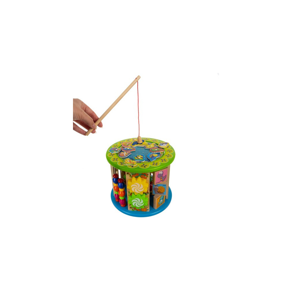 Dřevěná vzdělávací kostka pro děti s mnoha funkcemi a hrami. Kostka je navržena speciálně pro malé děti, nabízí 11 aktivit rozvíjejících motoriku, logické dovednosti, koordinaci, rozpoznávání barev a tvarů a další interaktivní prvky. Děti si procvičí například hodiny, počty nebo rozpoznávání barev.