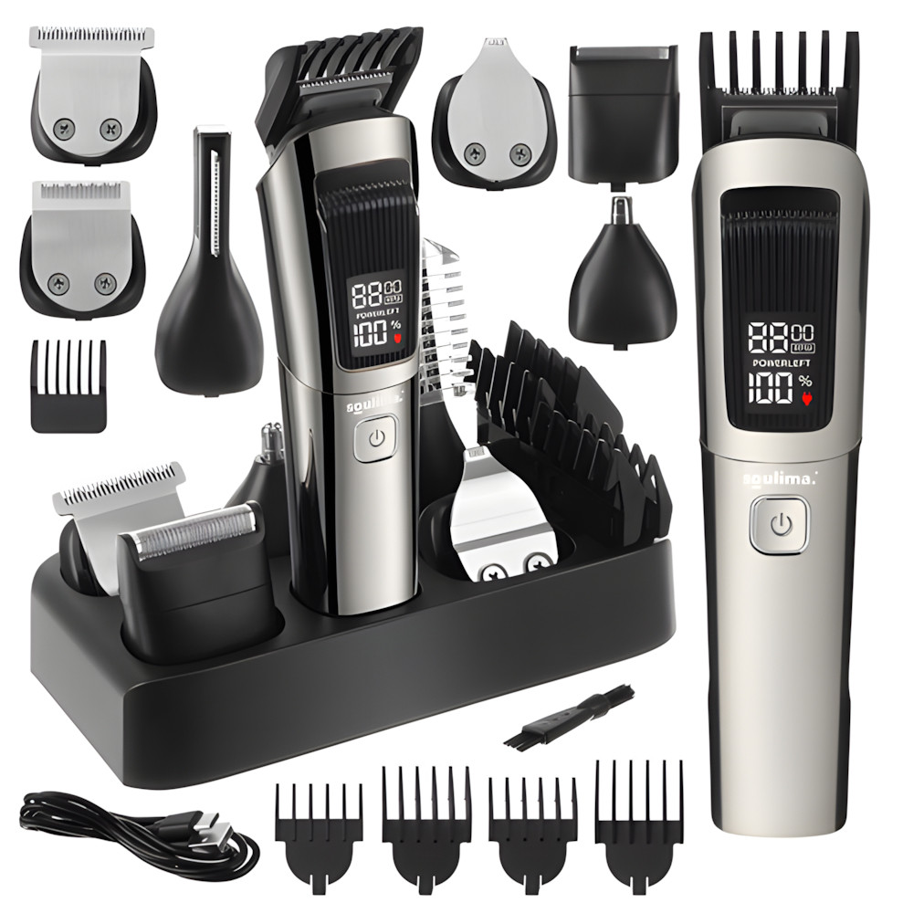Bezdrátový zastřihovač vlasů a vousů se sadou vyměnitelných hlavic umožňuje přesné stříhání a hladké oholení bez podráždění. Moderní displej, nabíjení přes USB-C a vodotěsnost IPX6 z něj činí perfektní volbu pro každodenní použití doma i na cestách. Nástavce lze po použití bezpečně opláchnout pod tekoucí vodou. Digitální displej zobrazuje aktuální stav baterie.