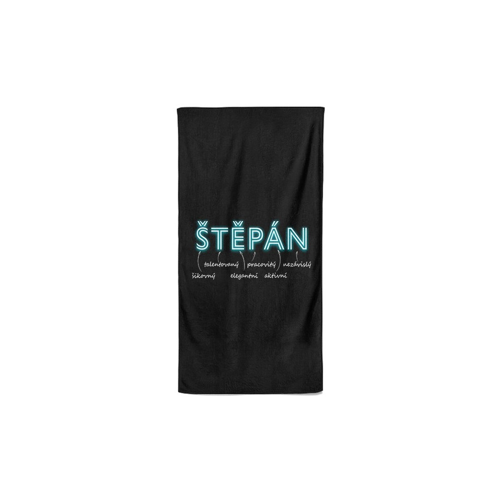 Luxusní osuška v černé barvě s vlastním jménem. Osuška má velký rozměr a materiál je velmi příjemný na dotek a díky speciální technice výroby, kdy se smísí BA a PES vlákna.