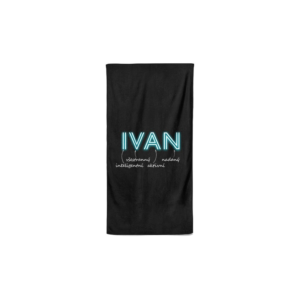 Luxusní osuška v černé barvě s vlastním jménem. Osuška má velký rozměr a materiál je velmi příjemný na dotek a díky speciální technice výroby, kdy se smísí BA a PES vlákna.