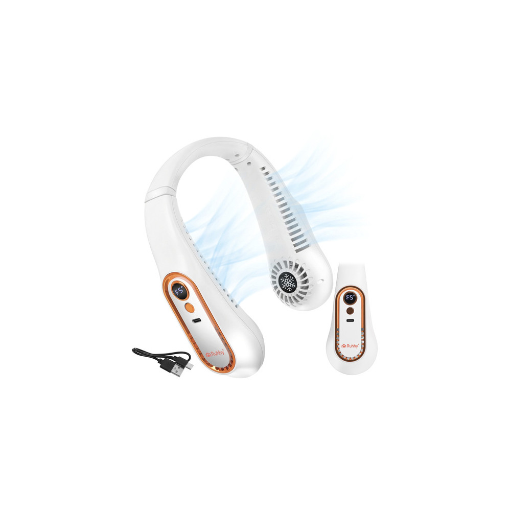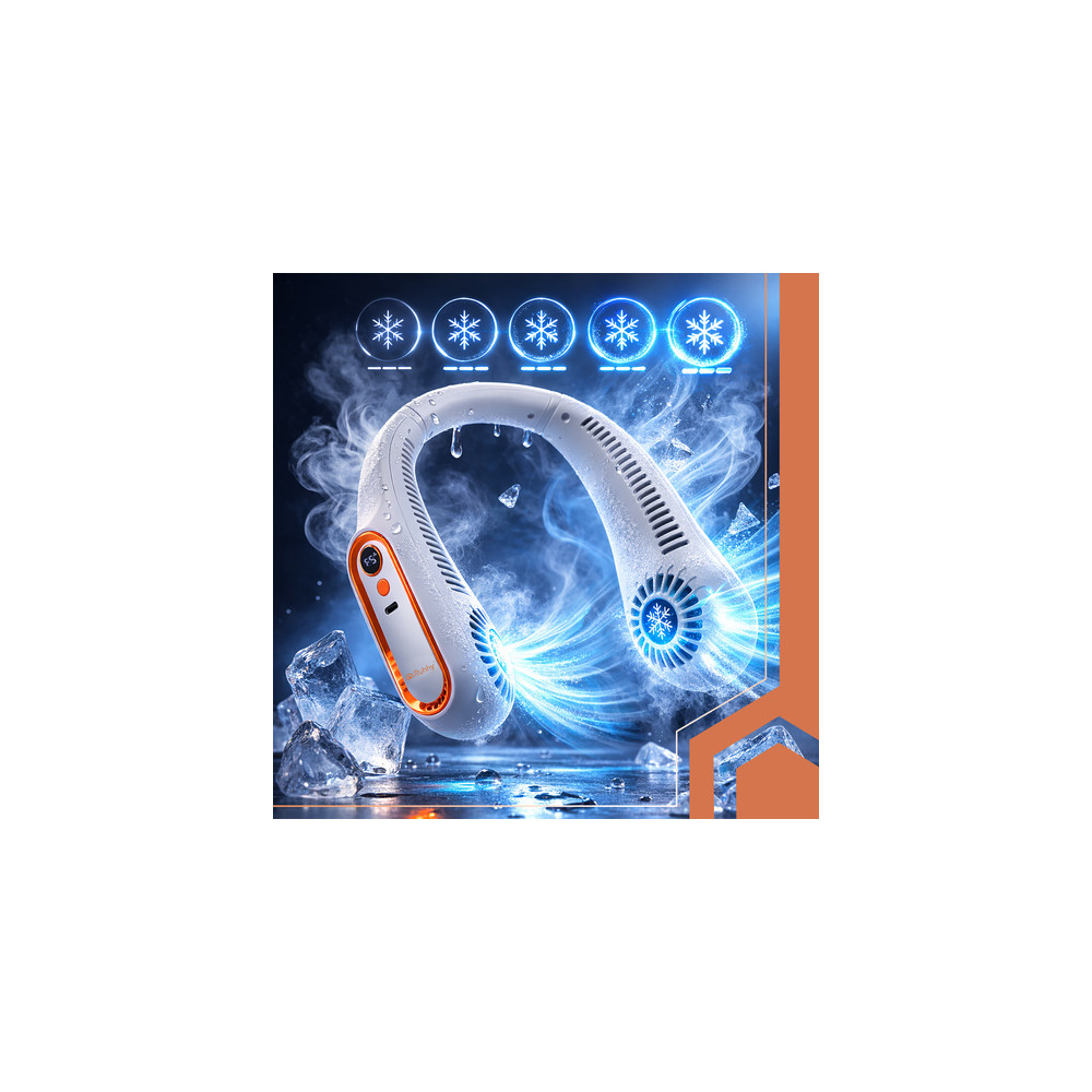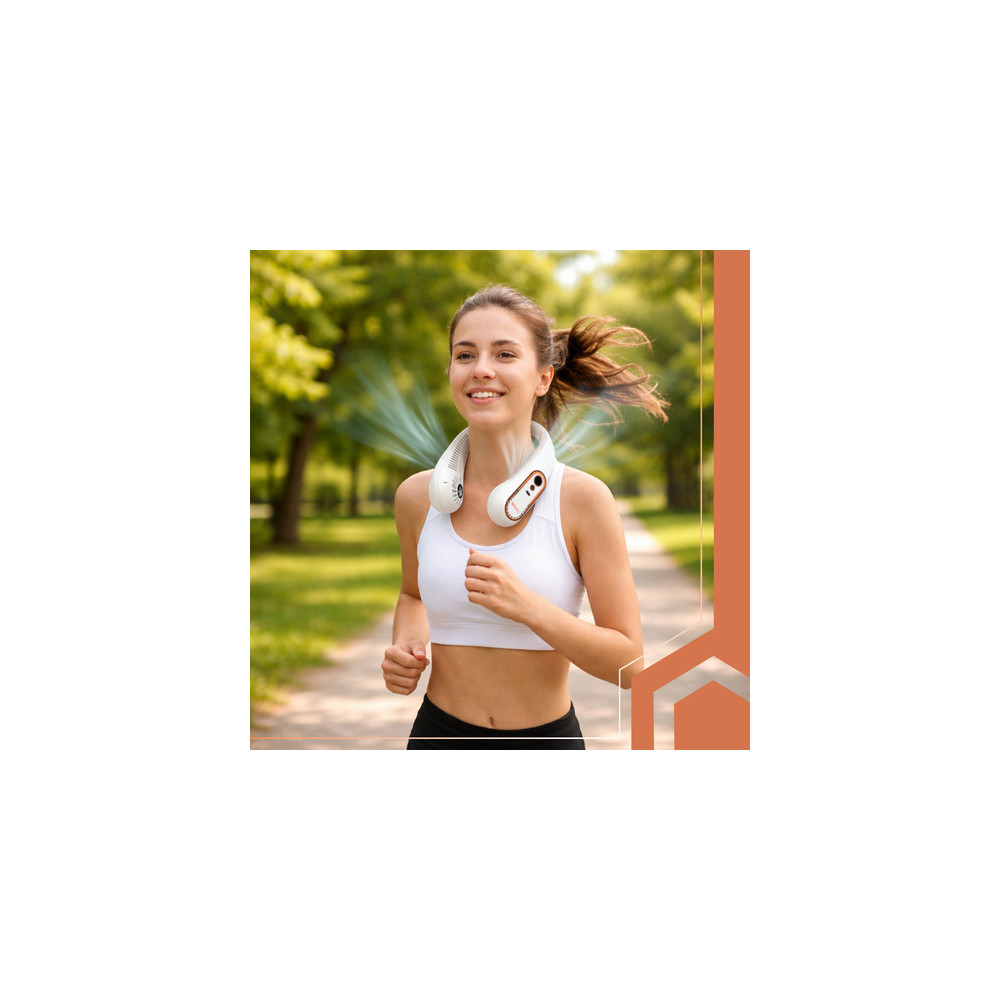 Bezdrátový ventilátor na krk je ideálním řešením pro osvěžení během horkých dnů doma i venku. Stačí jej pohodlně nasadit kolem krku a užívat si příjemný vánek bez nutnosti držení v ruce. Díky dvojitému 360° proudění vzduchu efektivně ochlazuje obličej, krk i šíji a přináší okamžitou úlevu. Na výběr máte z pěti rychlostních režimů, takže si snadno přizpůsobíte intenzitu chlazení aktuálním podmínkám. Bezlopatkový design zajišťuje bezpečné používání i pro osoby s dlouhými vlasy.