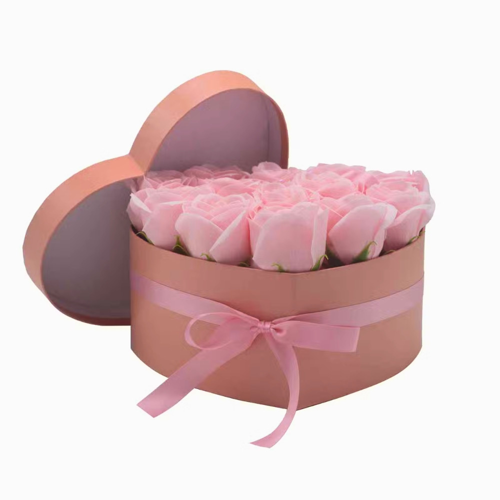 Mýdlové květy růže v dárkovém boxu srdce 13 ks růžové