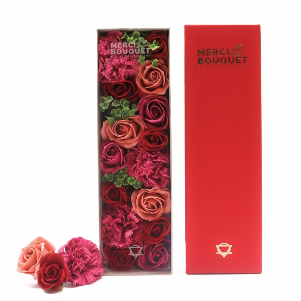 Romantické mýdlové květy v podlouhlém dárkovém boxu. Ideální dárek na Valentýna, k narozeninám a nebo jen tak z lásky pro radost. Mýdlové květy jsou vhodné pro romantickou koupel ve vaně. Jemná okouzlující vůně vytvoří příjemné chvilky relaxace. Krásné také jako dekorace, která nikdy nezvadne.