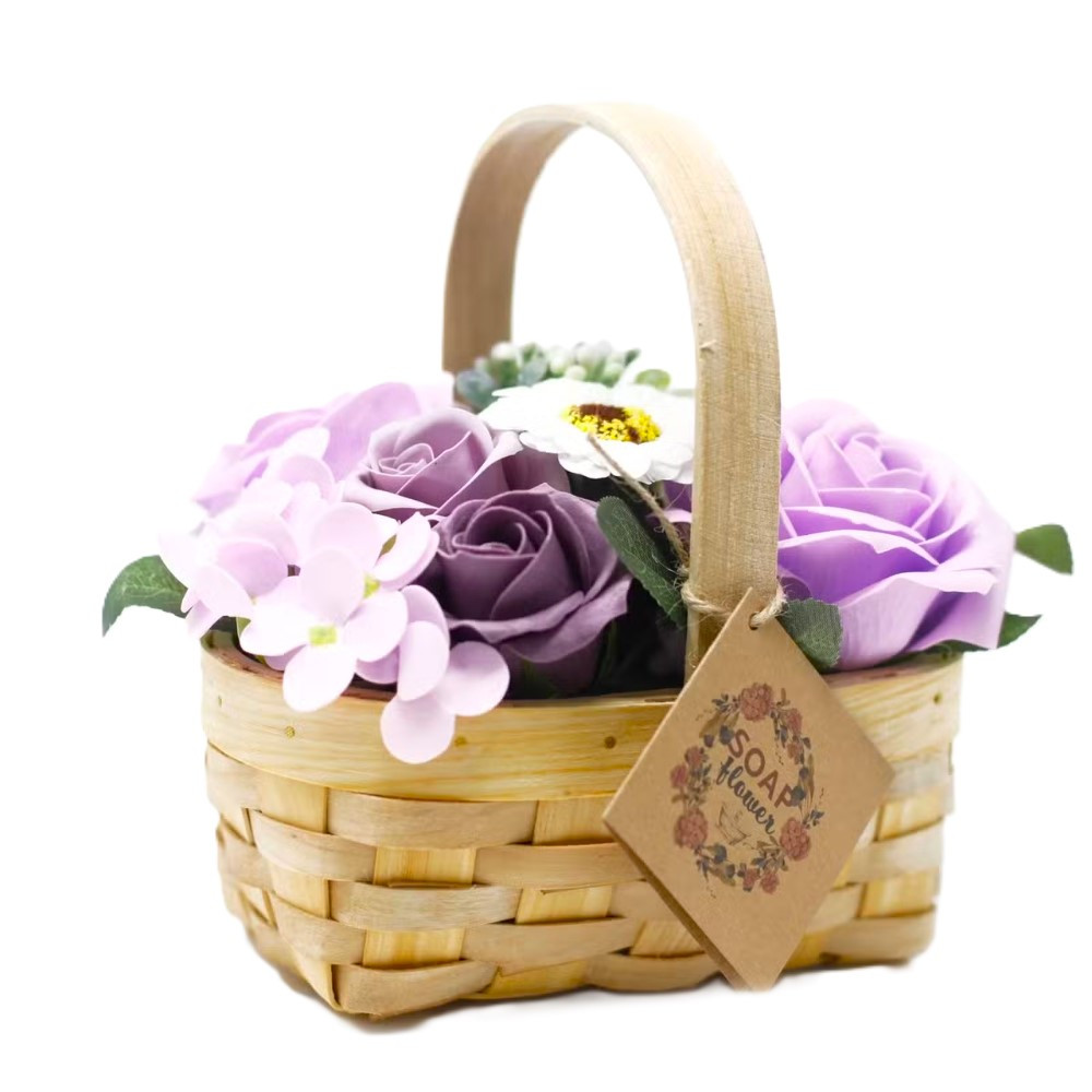 Kytice z mýdlových květů v proutěném košíku je ideálním dárkem na Valentýna, k narozeninám nebo jen tak z lásky pro radost. Mýdlové květy jsou vhodné pro romantickou koupel ve vaně. Jemná okouzlující vůně vytvoří příjemné chvilky relaxace. Krásné také jako dekorace, která nikdy nezvadne.
