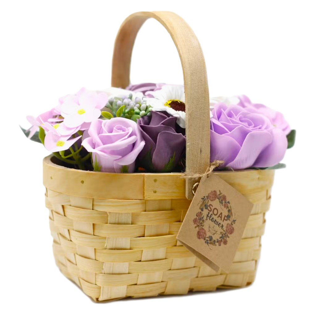 Kytice z mýdlových květů v proutěném košíku je ideálním dárkem na Valentýna, k narozeninám nebo jen tak z lásky pro radost. Mýdlové květy jsou vhodné pro romantickou koupel ve vaně. Jemná okouzlující vůně vytvoří příjemné chvilky relaxace. Krásné také jako dekorace, která nikdy nezvadne.