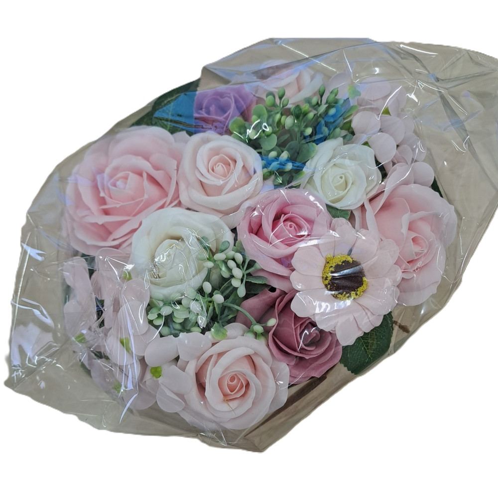 Mýdlové květy v dárkové tašce růže a karafiáty růžové