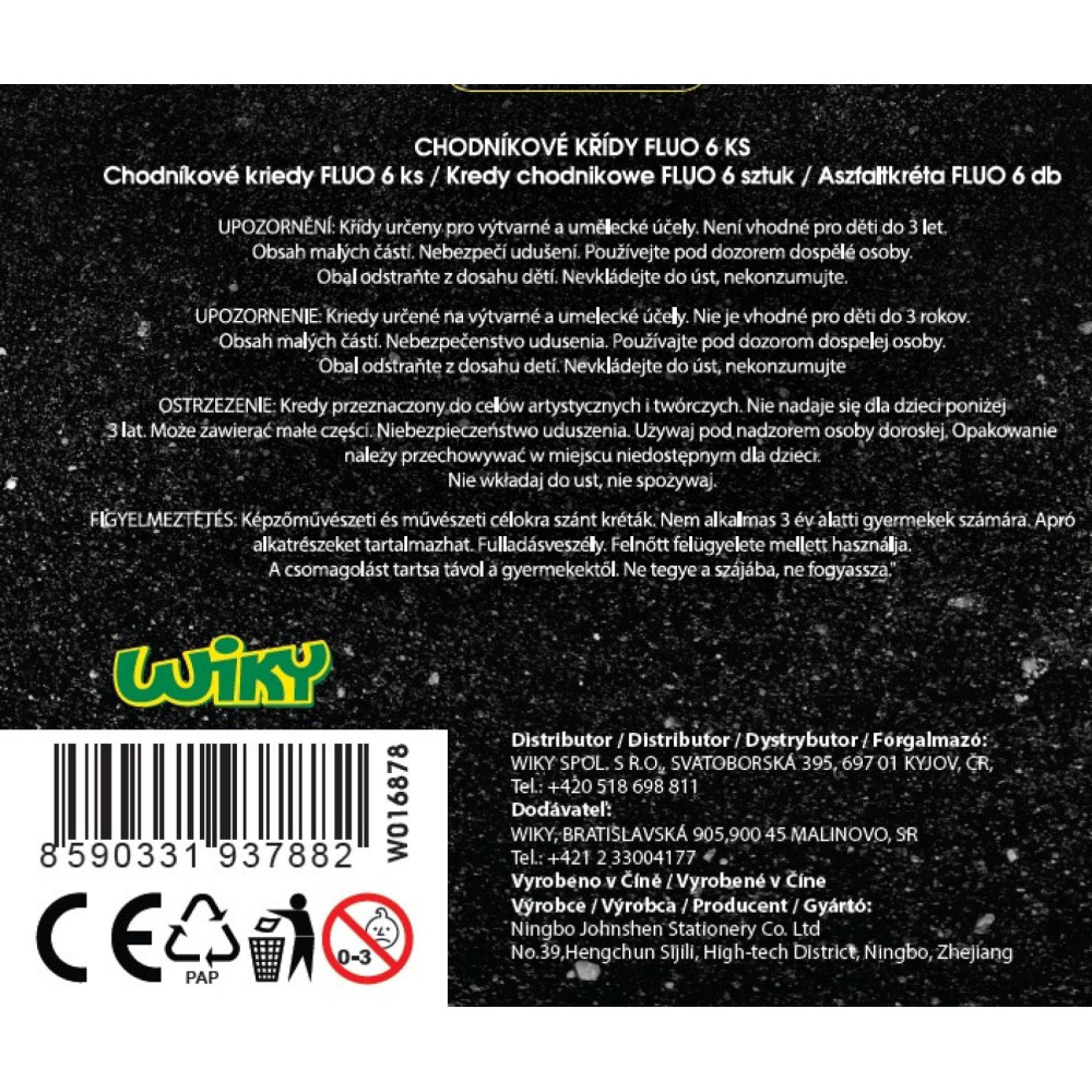 Chodníkové křídy v zářívých fluo barvách s klasickým hrotem v oválném provedení. Barvy: Žlutá, fialová, oranžová, modrá, zelená, růžová.