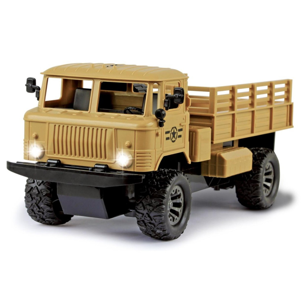Vojenské RC auto na dálkové ovládání se světelnými efekty. Přepínač ON/OFF je umístěn na spodní straně auta. USB kabel je součástí balení.