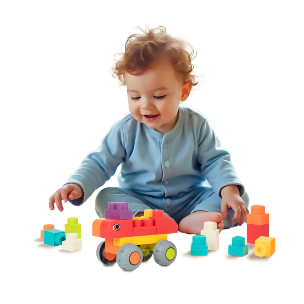 Barevná stavebnice z měkkých kostek je ideální první stavebnice pro nejmenší děti. Díky větším dílkům se snadno skládá a je bezpečná pro malé ručičky. Děti si mohou stavět jednoduché tvary, zvířátka nebo vozidla a rozvíjet tak svou fantazii i motoriku. Praktický plastový box s víkem a madlem usnadňuje uklízení i přenášení stavebnice.