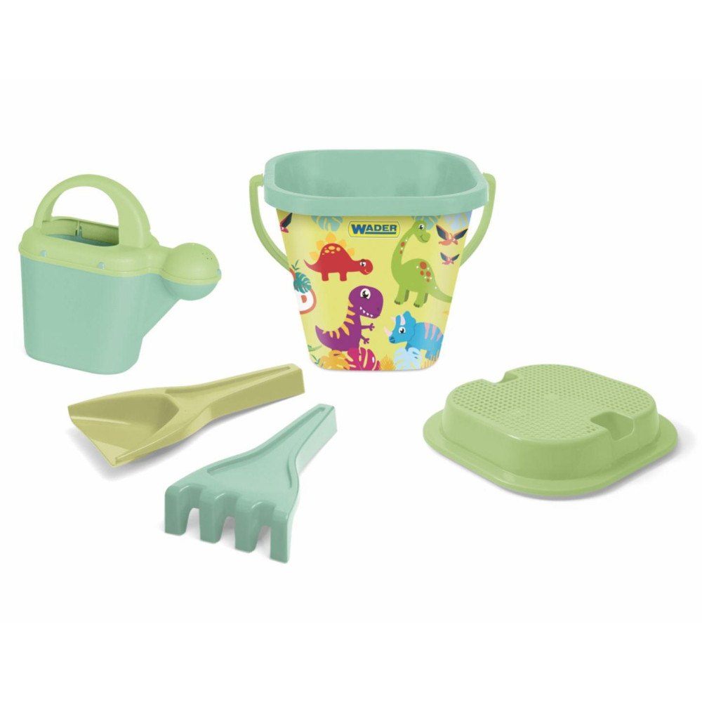 Krásná sada na písek s motivy dinosaurů. Zelená sada je vhodná pro holky i kluky a zajistí zábavu na každém pískovišti! Sada na písek je z řady RePlay, což znamená, že je vyrobena výhradně ze složek získaných z plastového spotřebního odpadu.