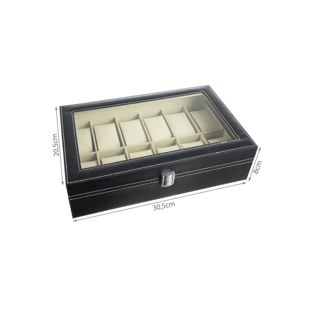 Elegantní organizér na hodinky je ideálním řešením pro přehledné uložení i stylovou prezentaci vaší sbírky. Kvalitní provedení s kontrastním prošíváním působí moderně a skvěle doplní každý interiér. Průhledné víko umožňuje snadný přehled o uložených hodinkách bez nutnosti otevírání.
