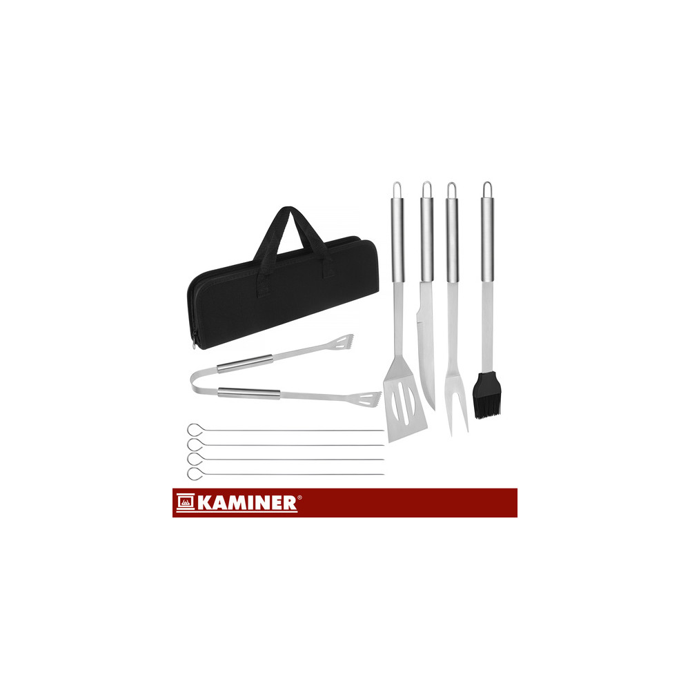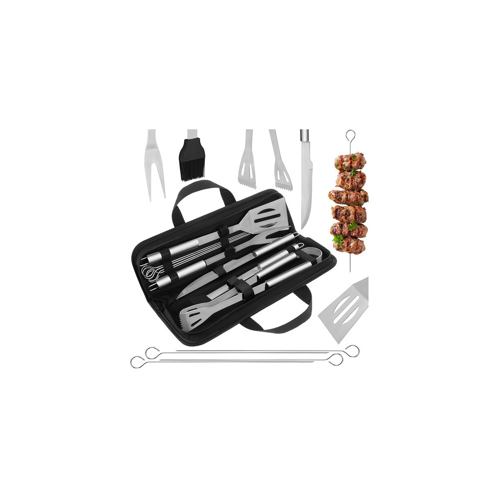 Sada grilovacího náčiní na gril uložená v praktickém černém pouzdře s uchem. Díky kufříku jsou tak potřeby lehce přenositelné, ať už je využijete na zahradě nebo někde při kempování. Vše budete mít ihned při sobě.