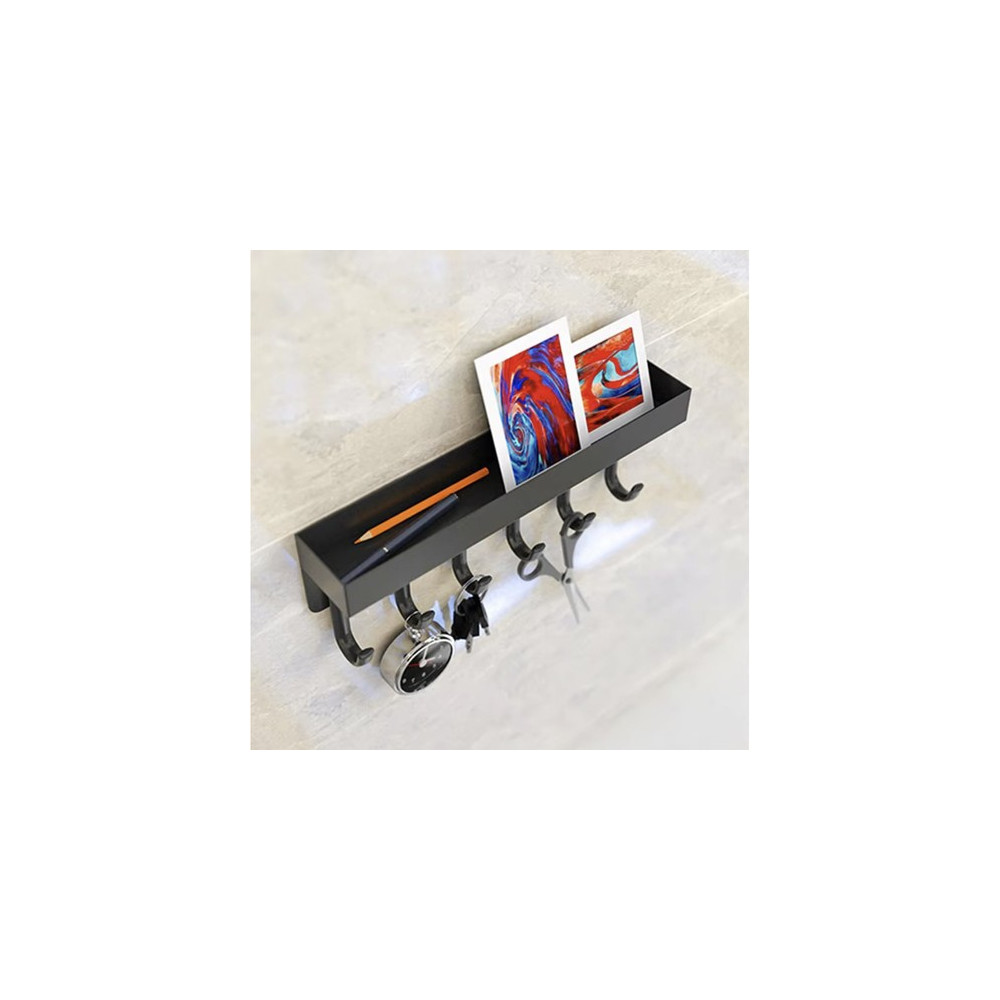 Nástěnná police s háčky vhodná do kuchyně, koupelny, předsíně nebo garáže. Velký magnet umožňuje bezpečnou a stabilní montáž na kovové povrchy. Poličku lze případně přivrtat také pomocí klasických šroubů.
