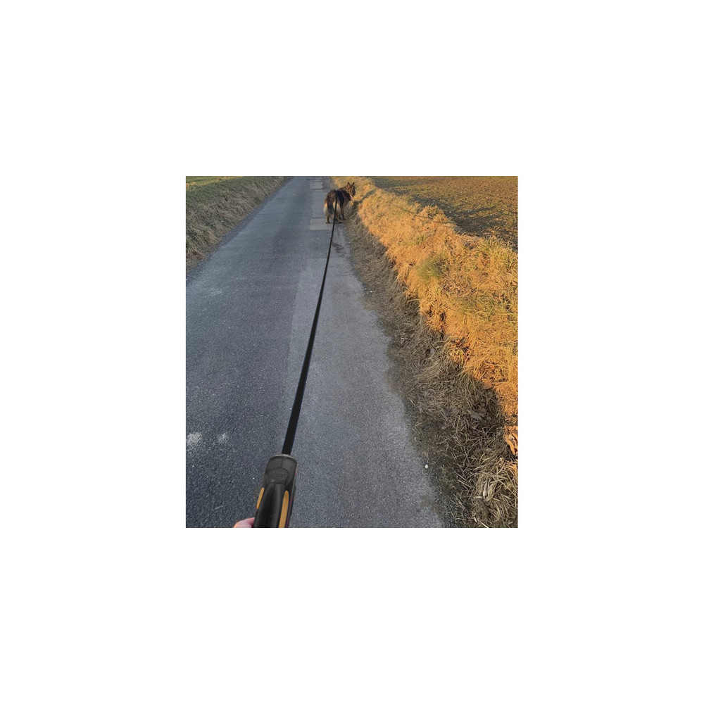 Odolný popruh spolu s pevnou konstrukcí zvyšují bezpečnost při každodenním používání. Kovová karabina pak usnadňuje rychlé a spolehlivé připnutí k obojku nebo postroji.