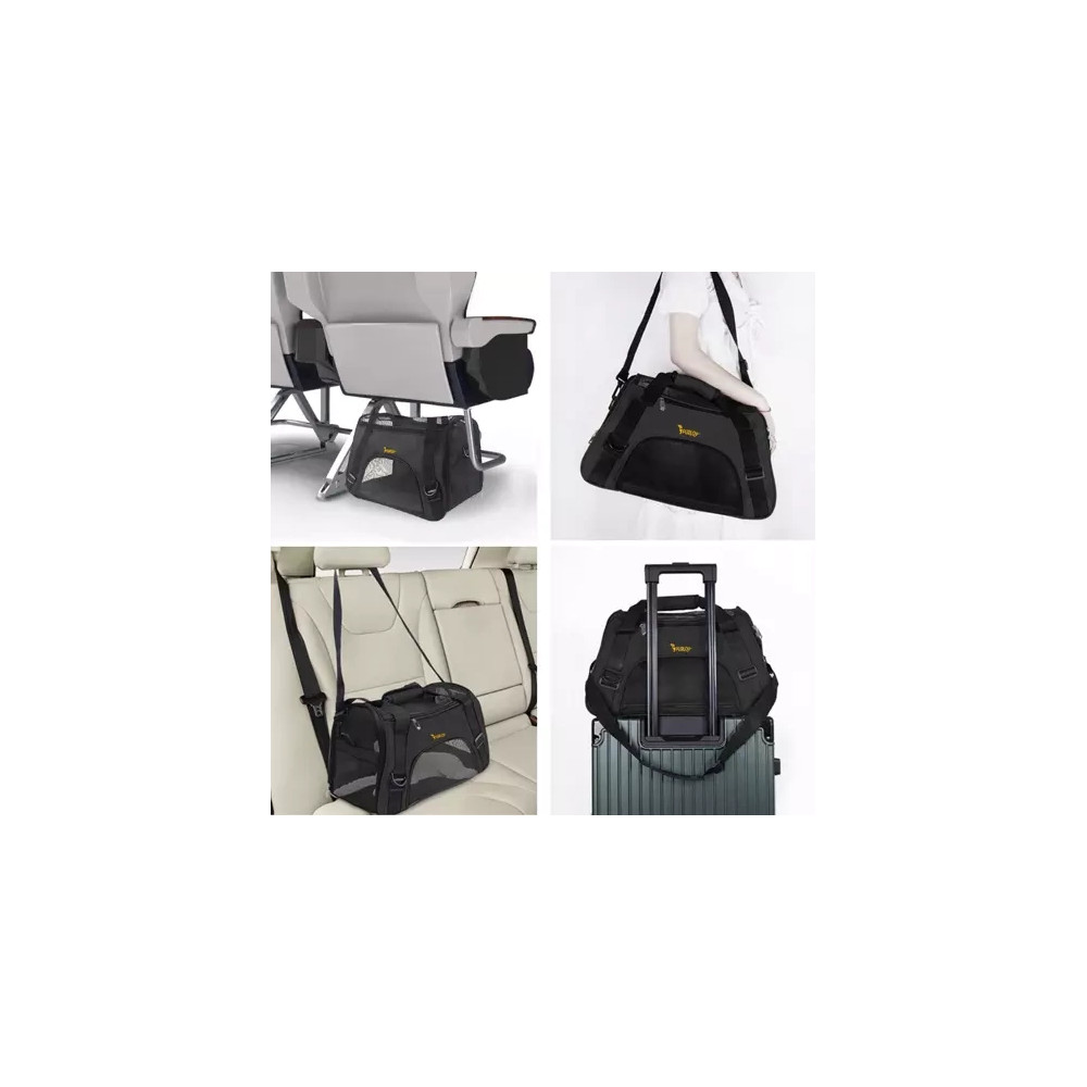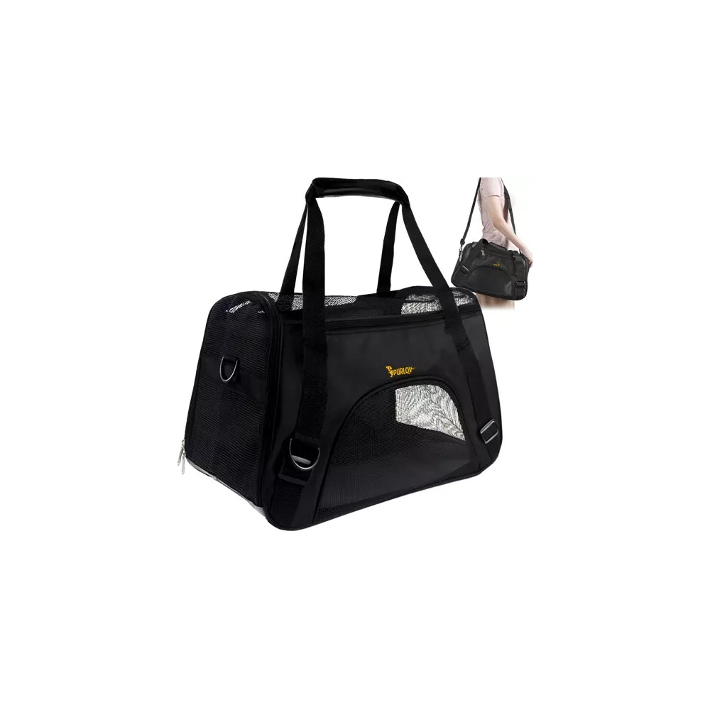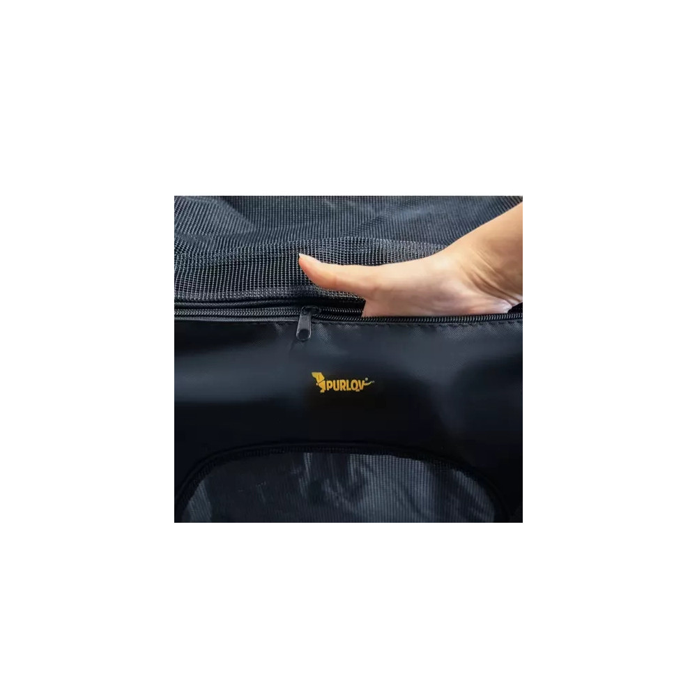 Přepravní taška pro psy a kočky zajišťuje naprosté pohodlí při přepravě. Taška má v horní i spodní části velké odvětrávání, což umožňuje zvířatům volně dýchat. Taška je vyrobena z pevného materiálu a na spodní části je vyztužená. Pevné madlo usnadňuje přenášení.