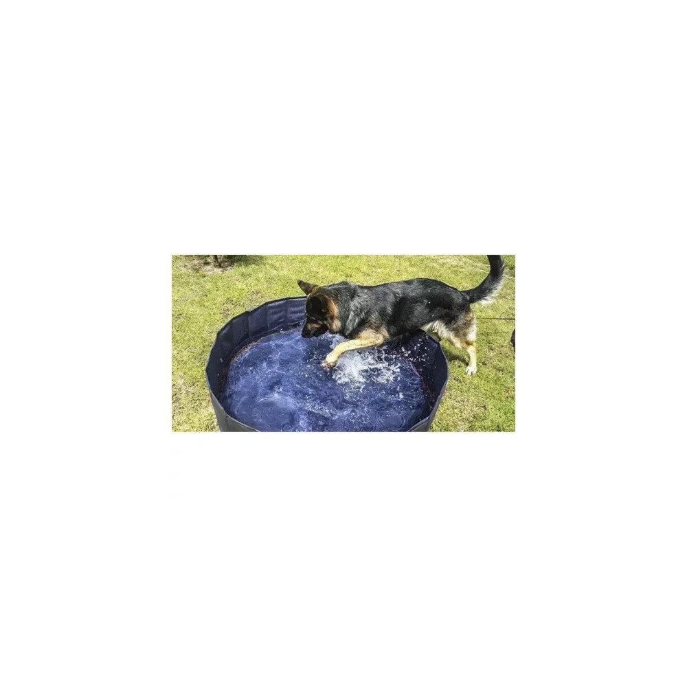 Skládací bazén pro psy je vhodný pro ochlazení v teplých letních dnech. Stěny bazénu jsou vyrobené z odolných materiálů vyztužených dřevovláknitou deskou, což zaručuje že si zanechává svoji stabilitu i při intenzivním používání. Díky vypouštěcímu ventilu se snadno a rychle vypustí.