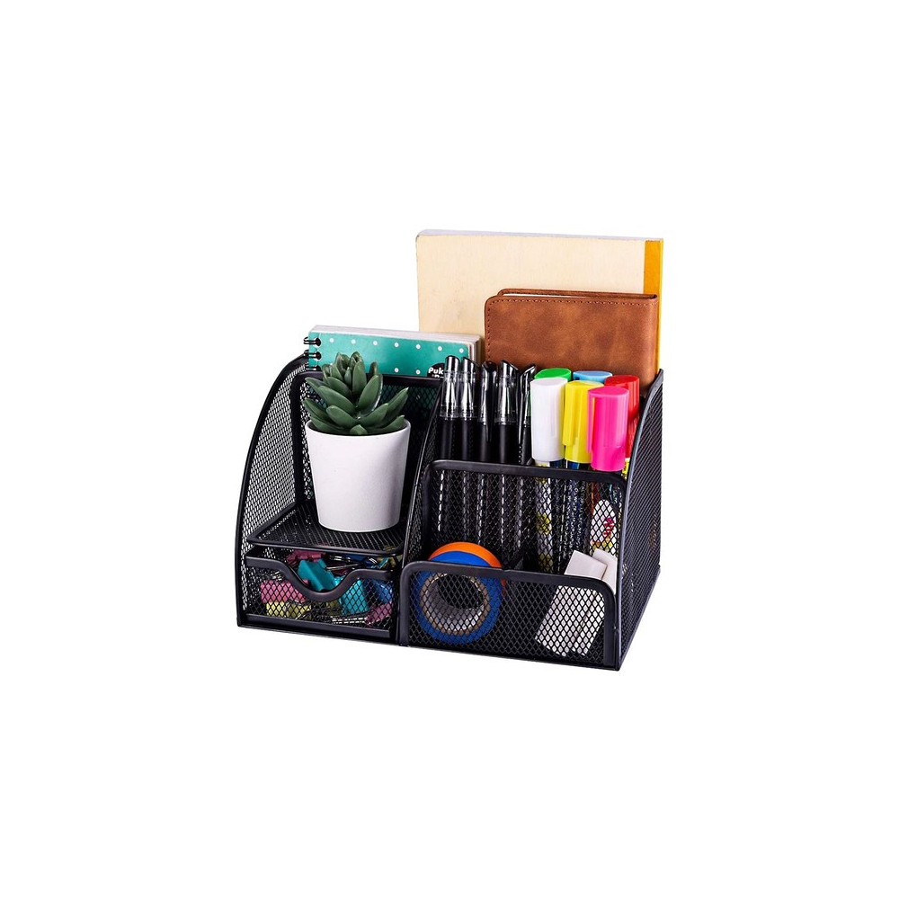 Orgnaizér má několik přihrádek, které pomáhají udržet na pracovním stole pořádek.