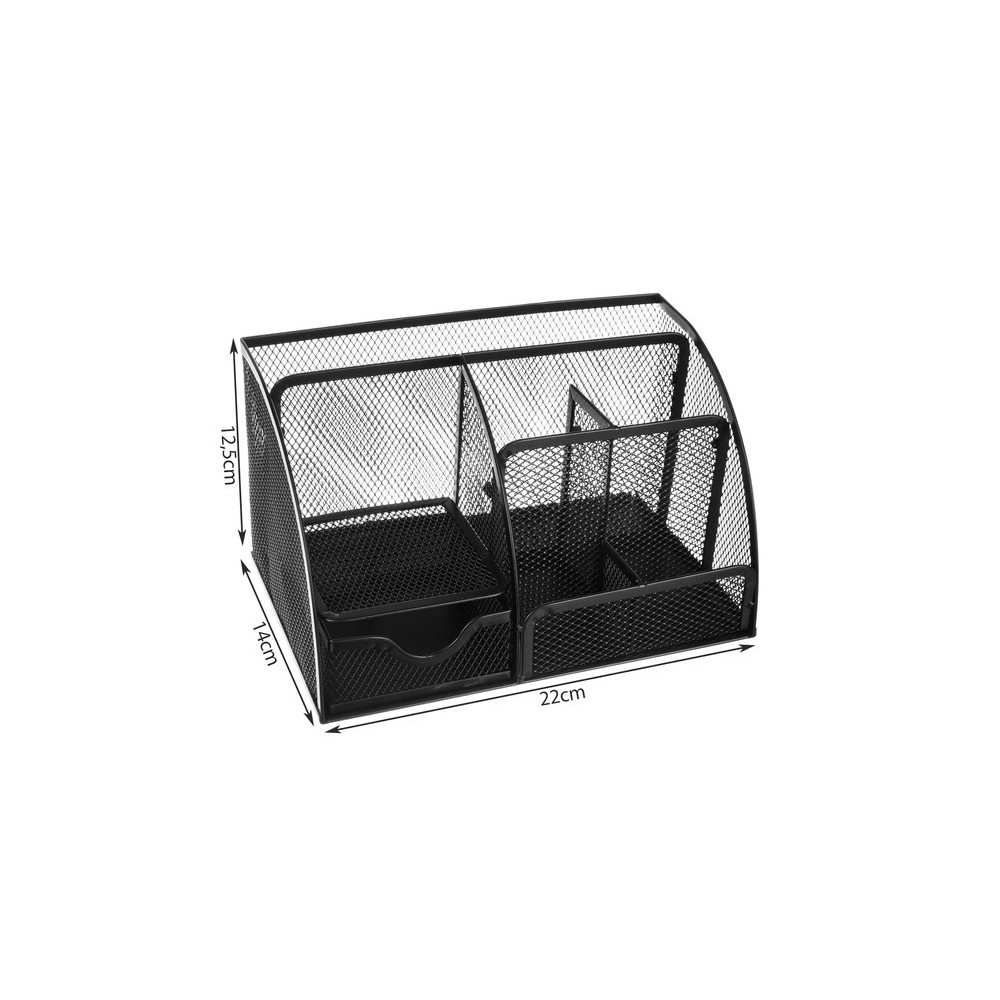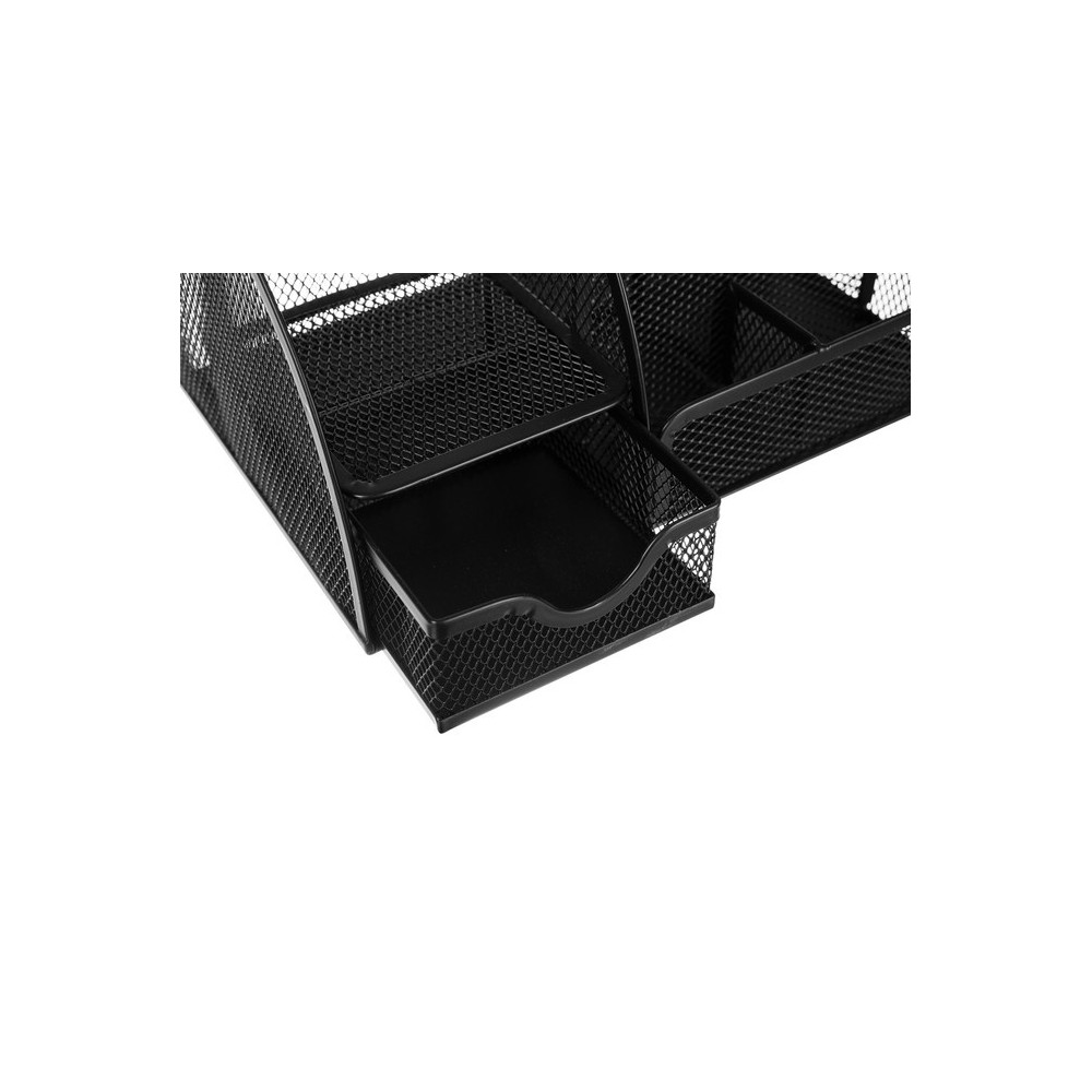 Černý kancelářský organizér na psací potřeby a další pomůcky jako jsou lepidla, gumy, kancelářské sponky apod. Je vyroben z kvalitního kovu, takže je odolný a má dlouhou životnost.