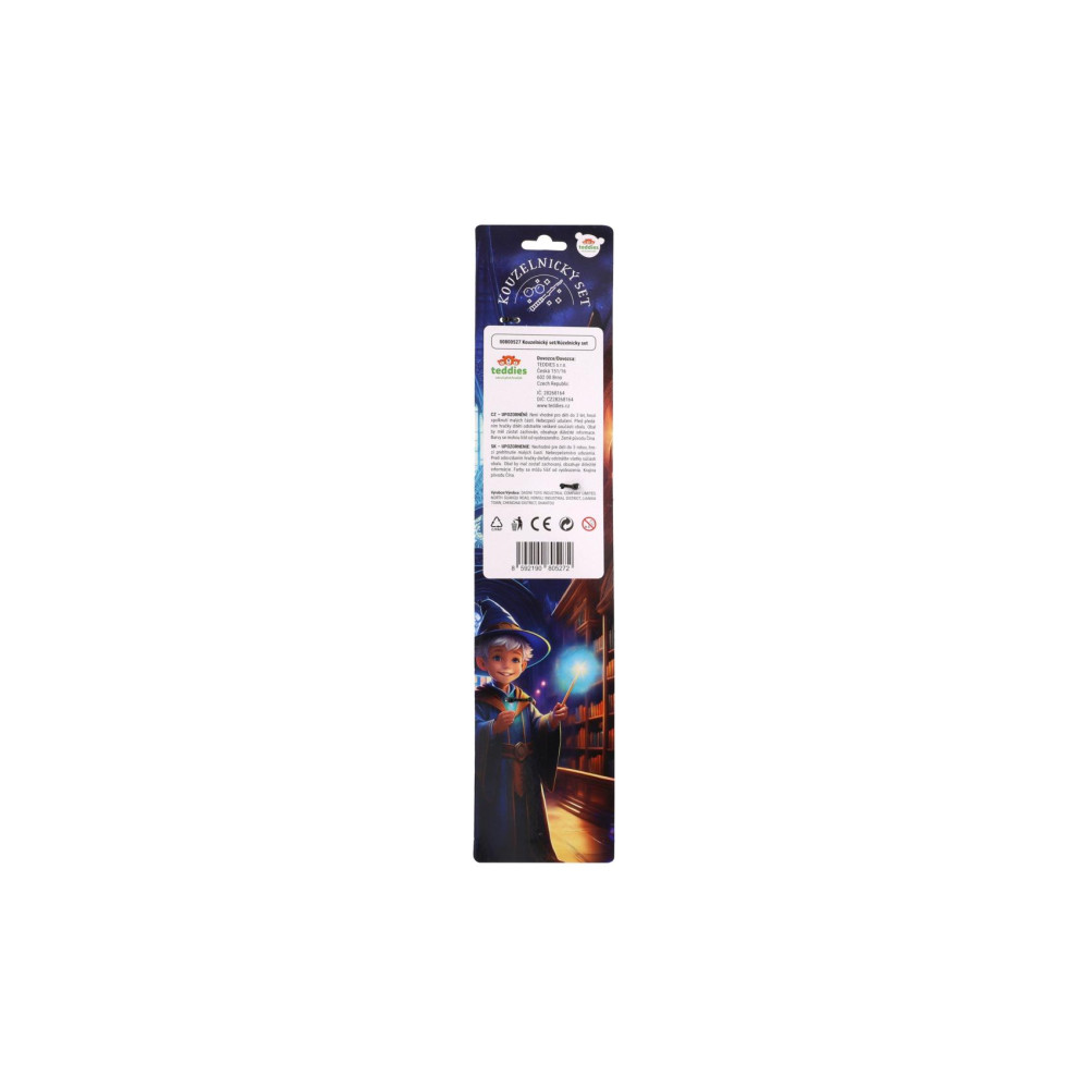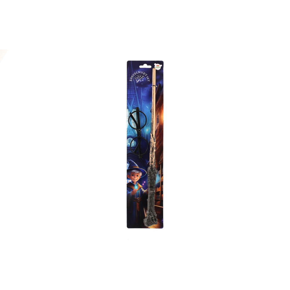 Staňte se mistrem kouzel. Tento kouzelnický set přenese děti do světa fantazie, čar a zaklínadel. Stylová hůlka a typické kulaté brýle jsou nezbytnou výbavou každého malého kouzelníka – ať už se chystá na čarodějnický trénink, kouzelnický souboj nebo kouzla jen tak pro zábavu.