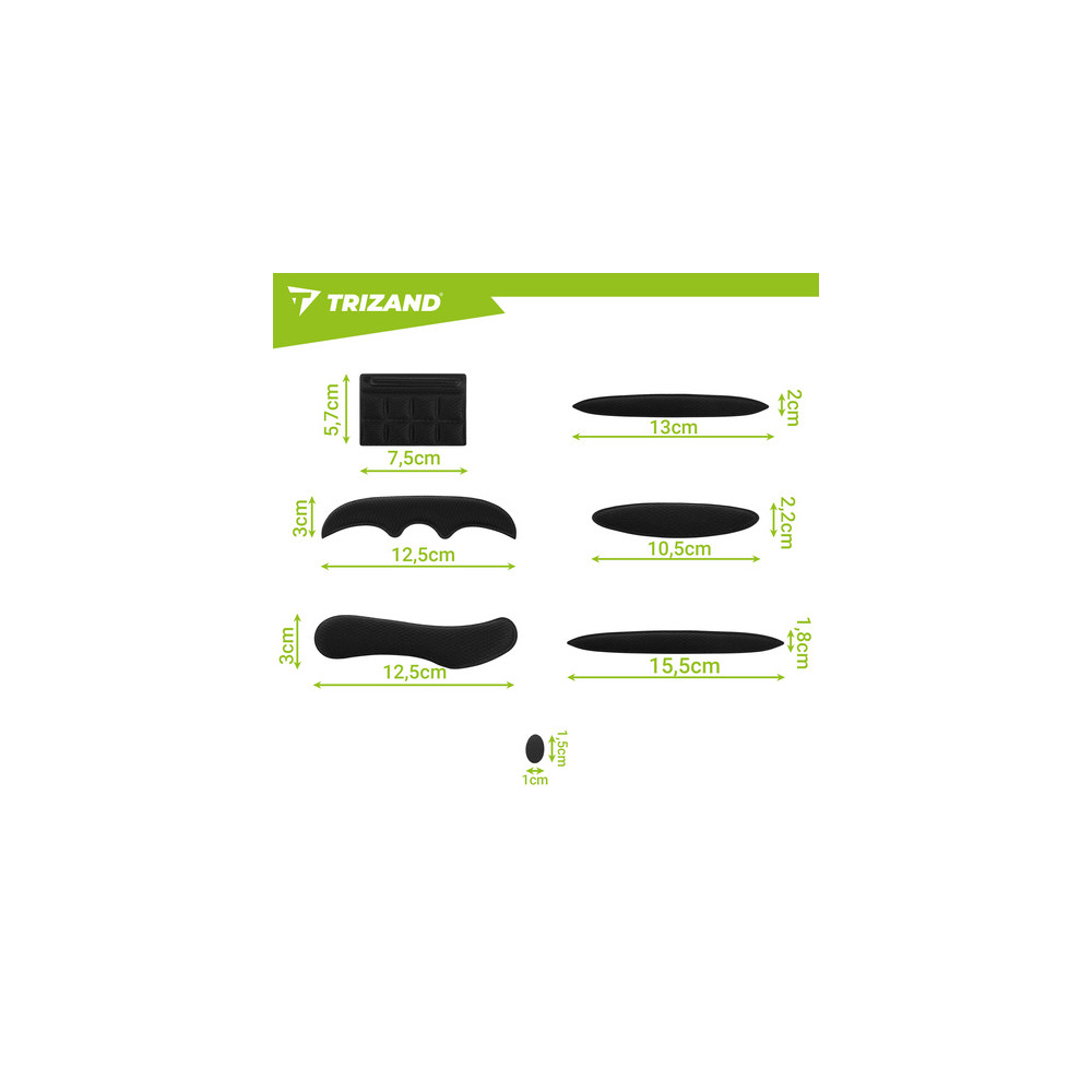 Rozměr: 15,5 x 1,8 cm, 10,5 x 2,2 cm, 13 x 2 cm, 12,5 x 3 cm, 12,5 x 3 cm, 7,5 x 5,7 cm, 1,5 x 1 cm