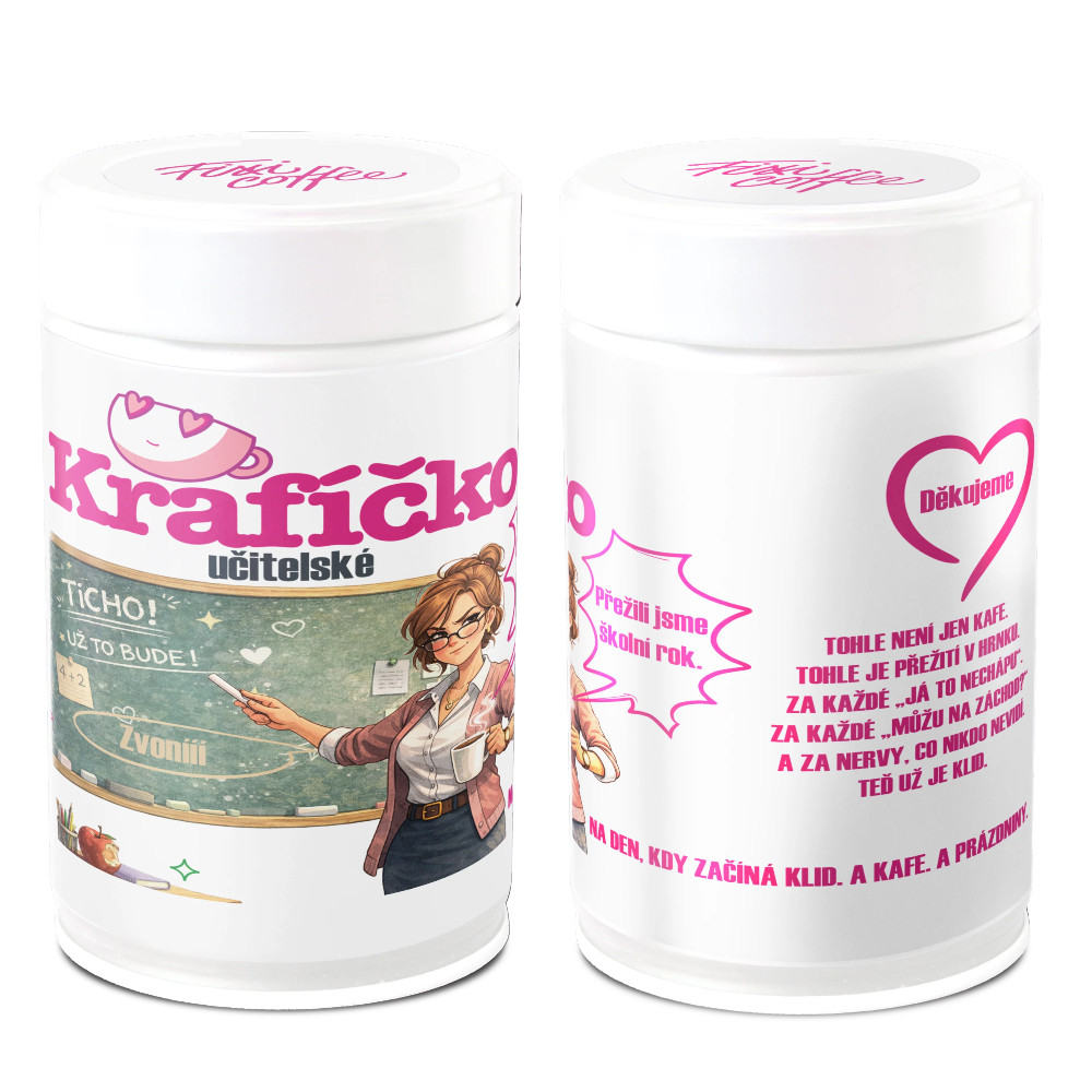 Krafíčko učitelské je malá odměna za velký výkon – za celý školní rok, trpělivost a nervy, které nikdo nevidí. Ideální dárek pro učitele. Tohle není jen kafe. Tohle je přežití v hrnku.Za každé „já to nechápu“. Za každé „můžu na záchod?“A za každé ráno, kdy se vám fakt nechtělo. Za trpělivost. Za klid. Za to, že jste to s námi dali. Teď už jen kafe. A klid.