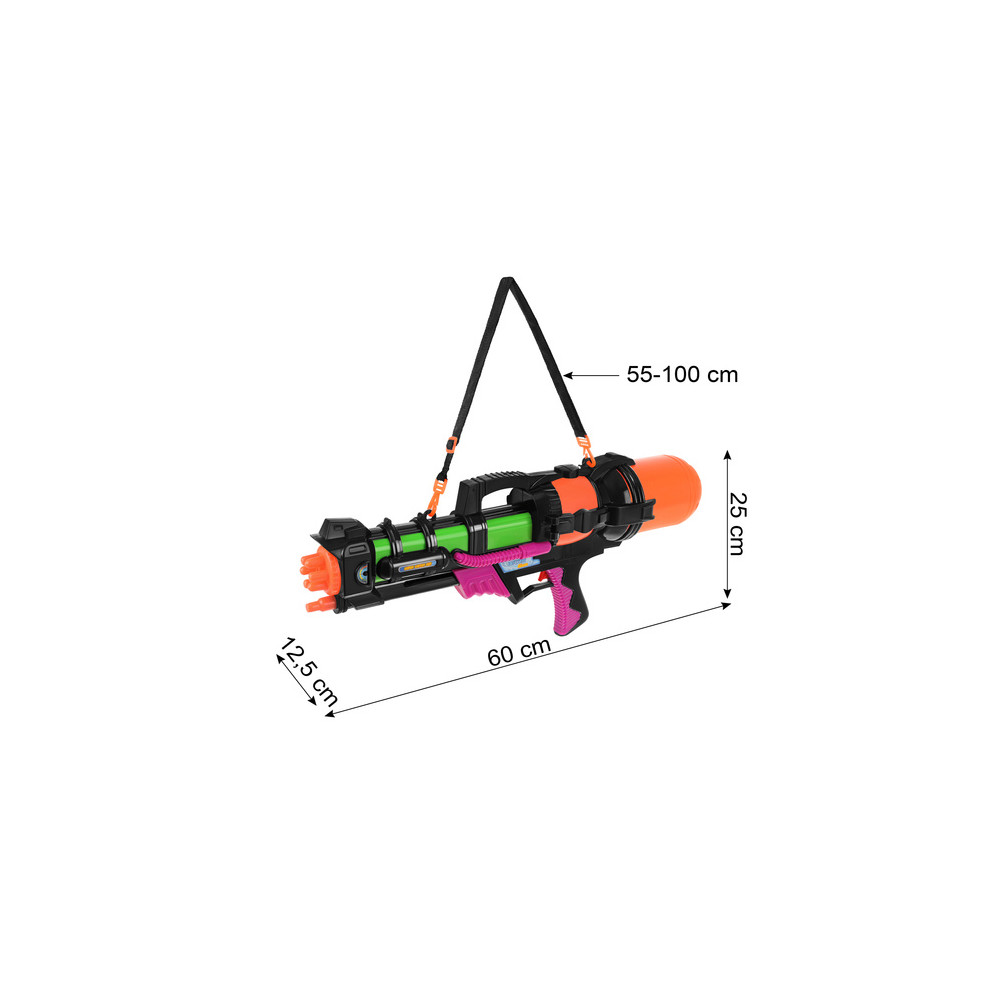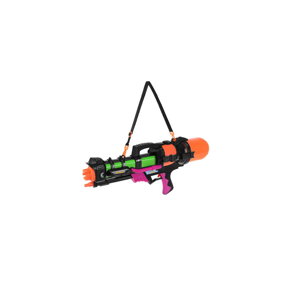 Velká vodní pistole zabaví v létě celou partu. Pistole má dostřel cca 6 metrů, takže vodní bitvy budou o to zajímavější. Díky velké nádrži není potřeba často doplňovat vodu. Díky nastavitelnému popruhu si můžete pistoli zavěsit přes rameno.