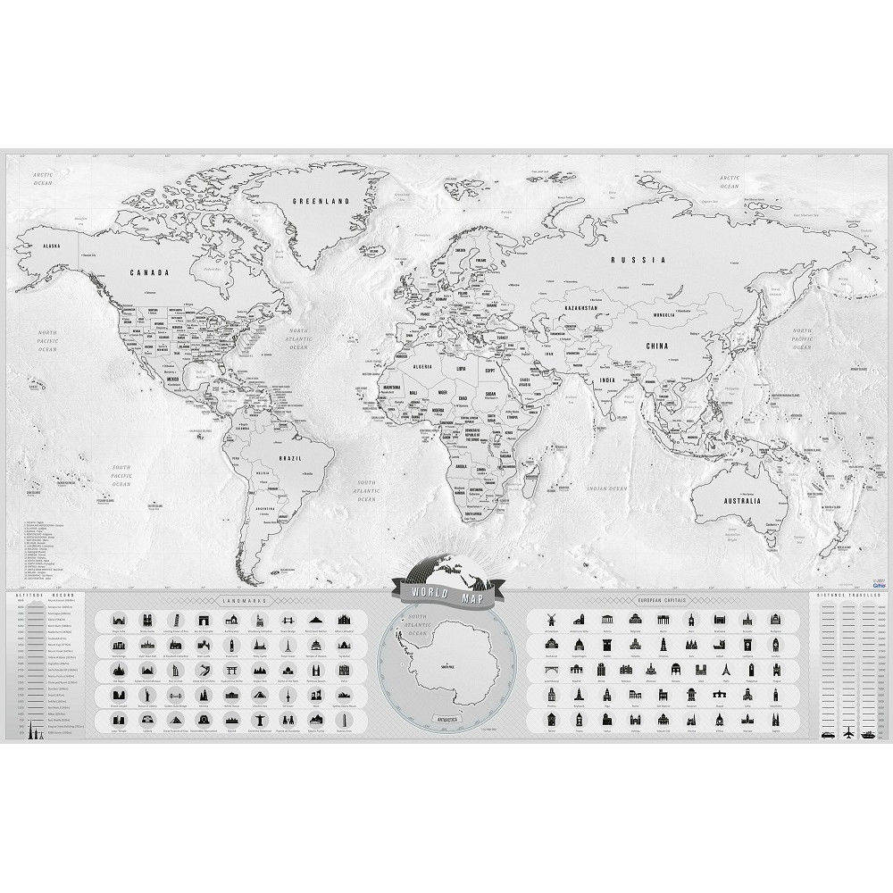 Stírací mapa světa XL Blanc edition - stříbrná