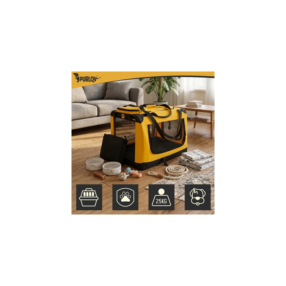 Přepravní taška vhodná pro psy a kočky s hmotností do 25 kg. Síťované stěny zajišťují dobrou prodyšnost a snižují stres zvířete. Kovový rám zase stabilitu a bezpečnost.