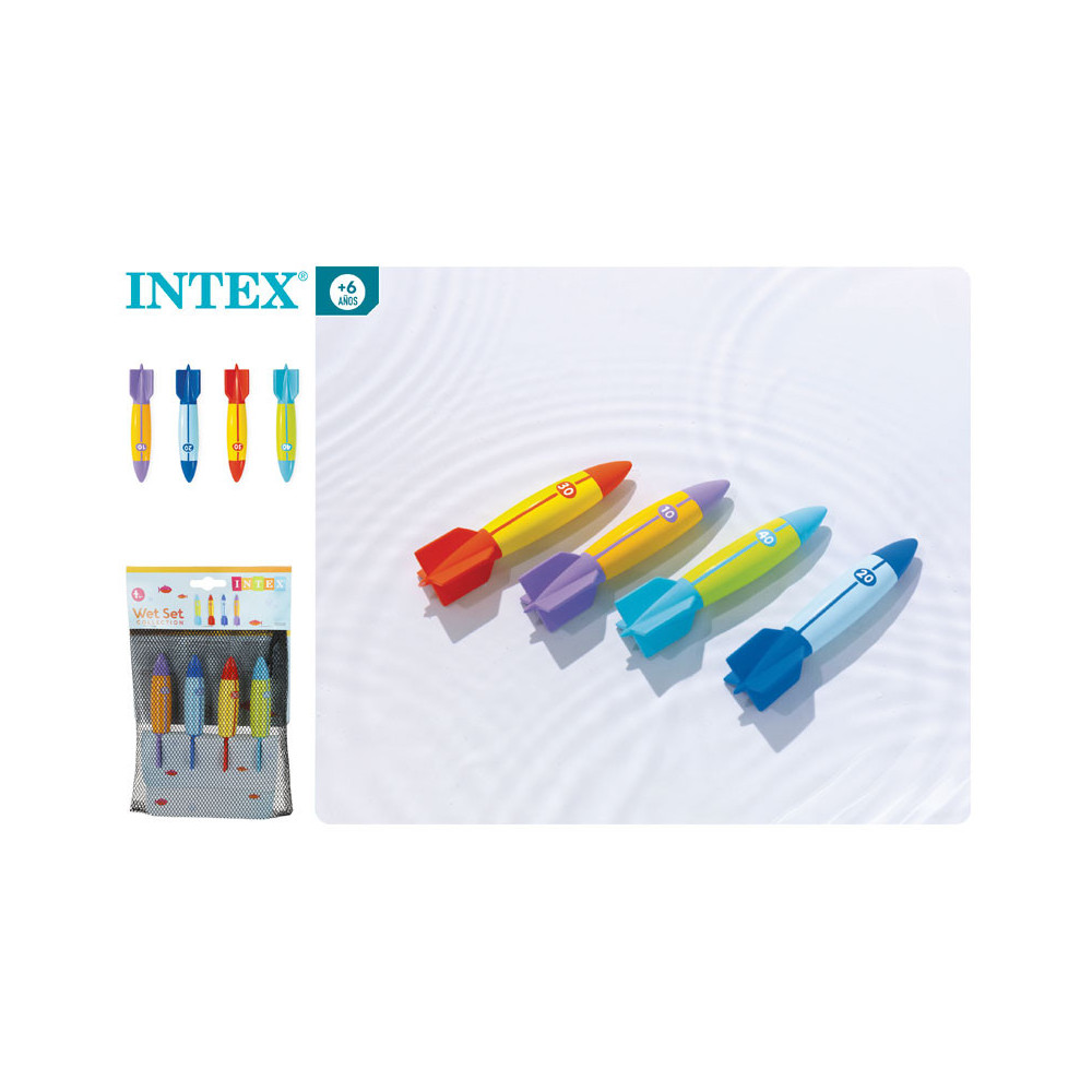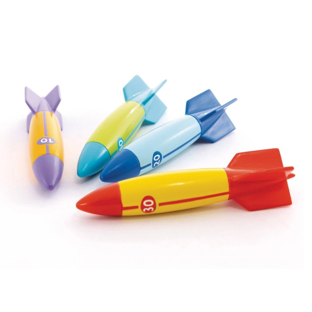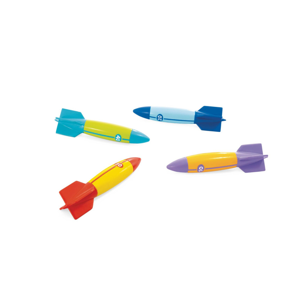 Potápěcí torpéda zpestří každou zábavu ve vodě. Stačí je hodit do bazénu a sledovat, jak rychle klesají ke dnu – ideální pro trénink potápění i soutěžení. Barevné provedení zajišťuje dobrou viditelnost pod vodou.