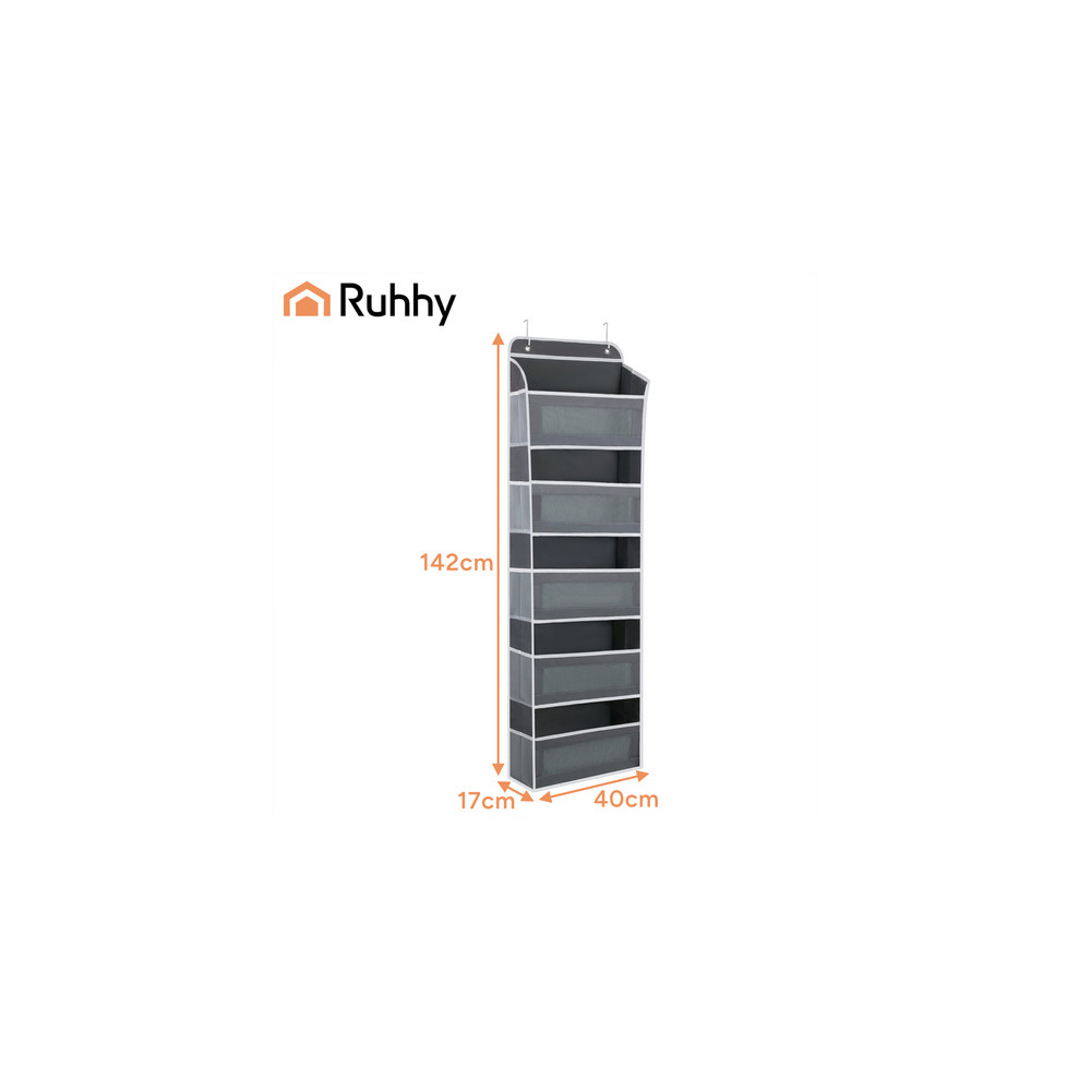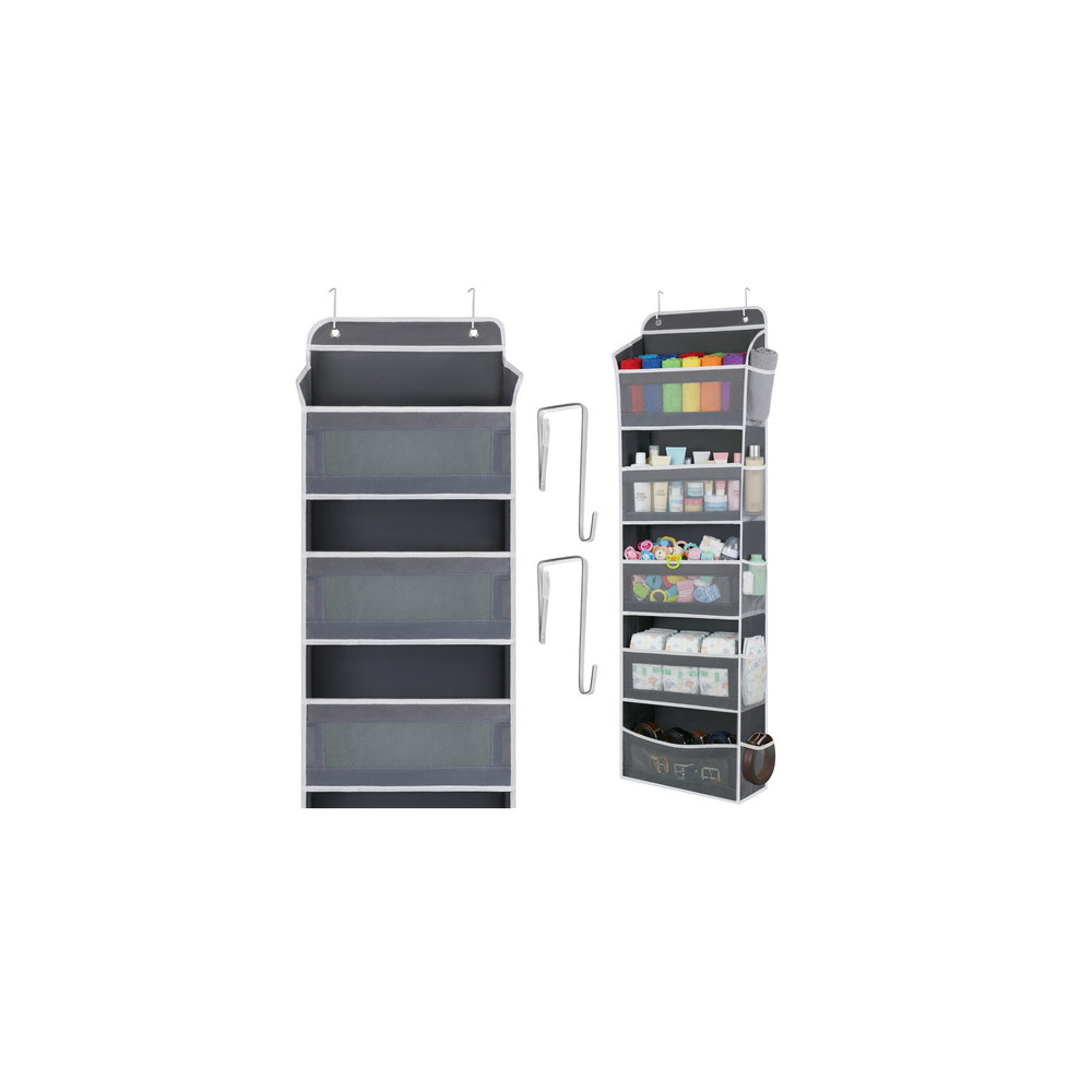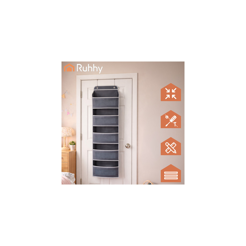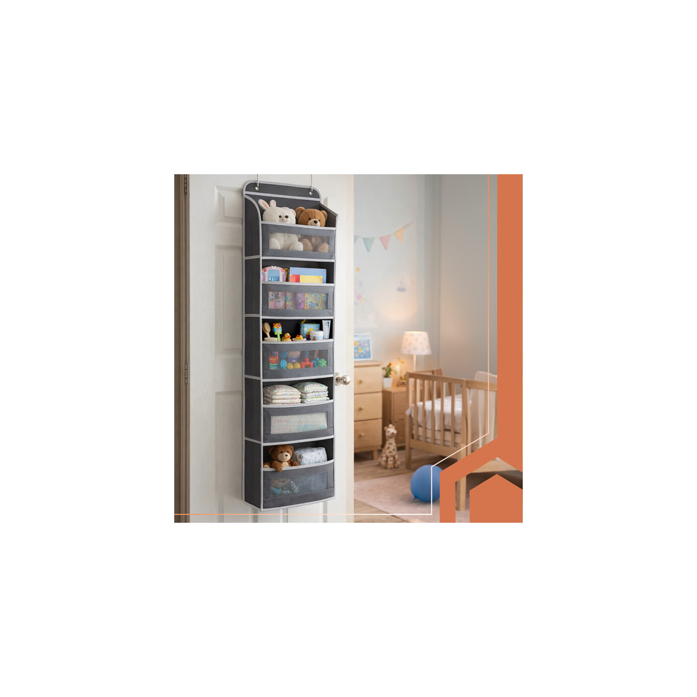 Závěsný organizér na dveře vhodný na drobnosti do koupelny nebo dětského pokoje. Organizér má 5 prostorných přihrádek a 5 dalších kapes na boku. Pomáhá udržovat pořádek a snadněji třídit věci.