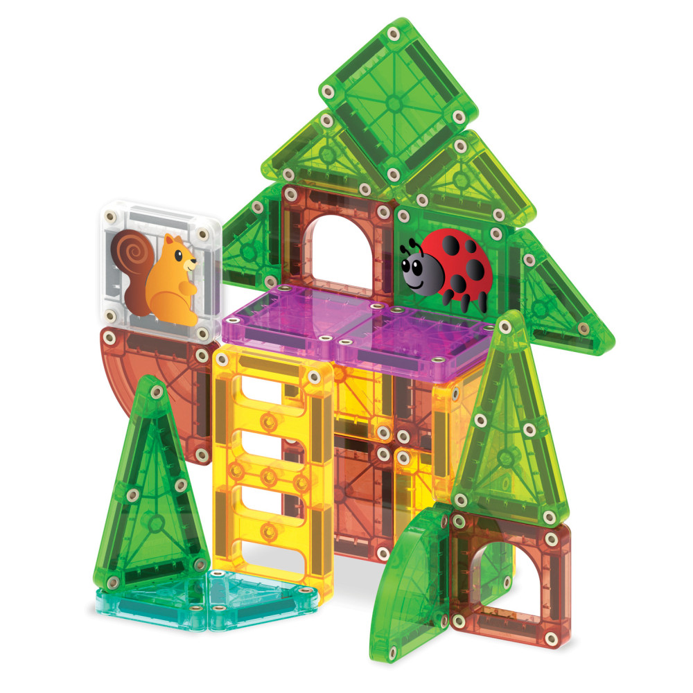 Cestovní magnetická stavebnice MAGNA-TILES microMAGS Treehouse Travel Set přináší dětem možnost vytvářet vlastní lesní světy plné fantazie. Díky přírodním barvám, tematickým dílkům se zvířátky a jedinečným tvarům si děti postaví domečky na stromech, lesní stezky či útulné úkryty.