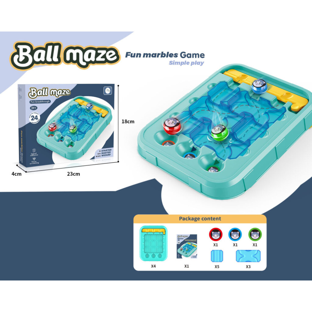 Kuličková hra až pro 3 hráče. Postav si svou dráhu a můžeš začít závodit. Součástí balení jsou 3 kuličky a návod.
