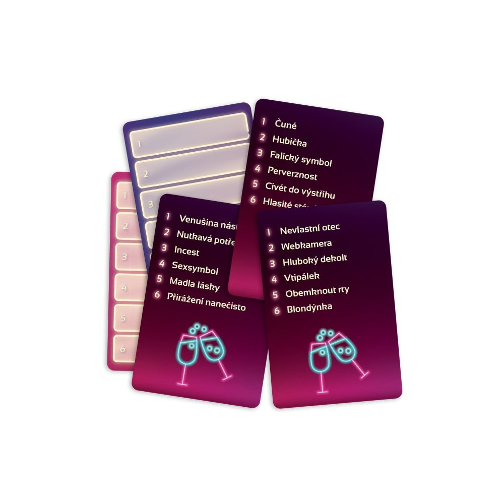 V párty hře budete svým spoluhráčům z týmu vysvětlovat peprné výrazy. Součástí hry jsou i kartičky, kam si můžete napsat svá vlastní slova.