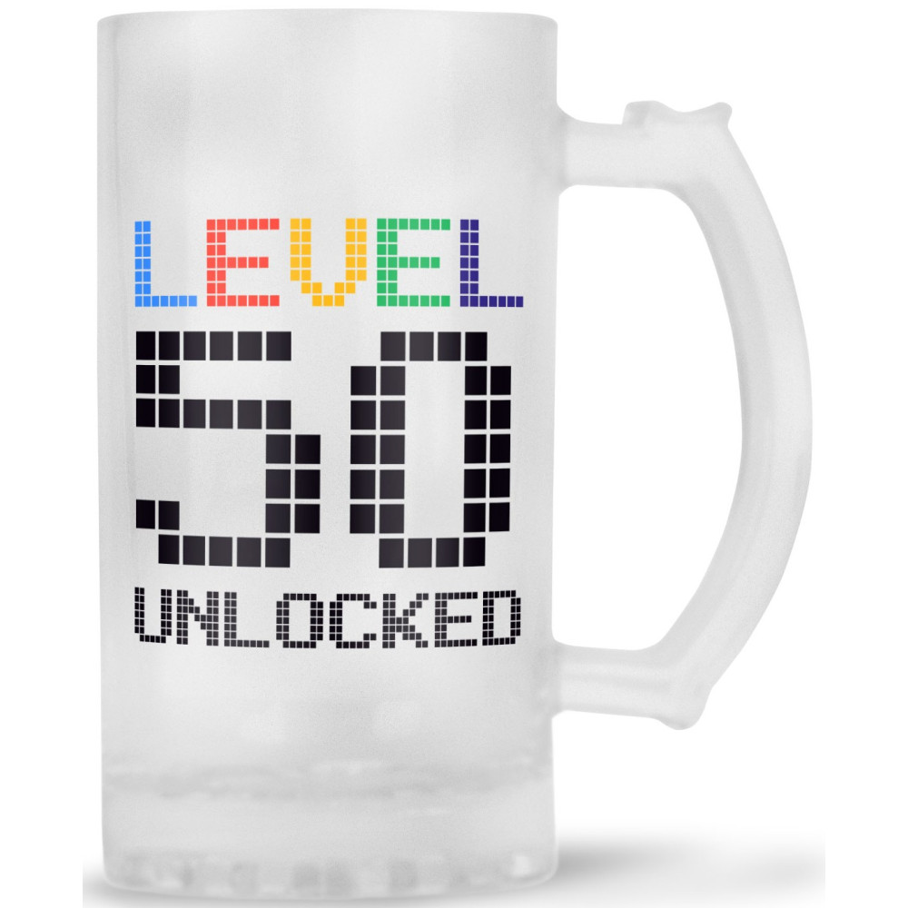 Luxusní korbel z mléčného skla s vtipným herním motivem nejen k narozeninám. Potisk je na obou stranách půllitru.