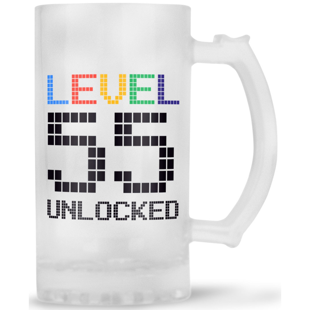 Luxusní korbel z mléčného skla s vtipným herním motivem nejen k narozeninám. Potisk je na obou stranách půllitru.