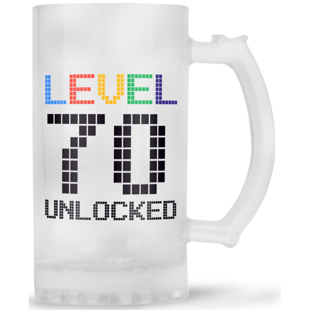 Luxusní korbel z mléčného skla s vtipným herním motivem nejen k narozeninám. Potisk je na obou stranách půllitru.